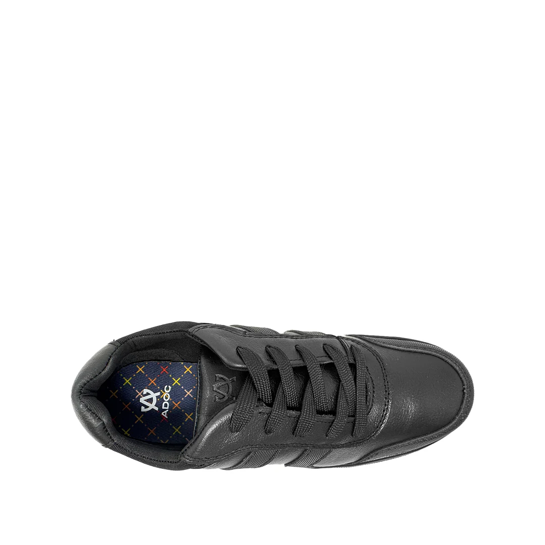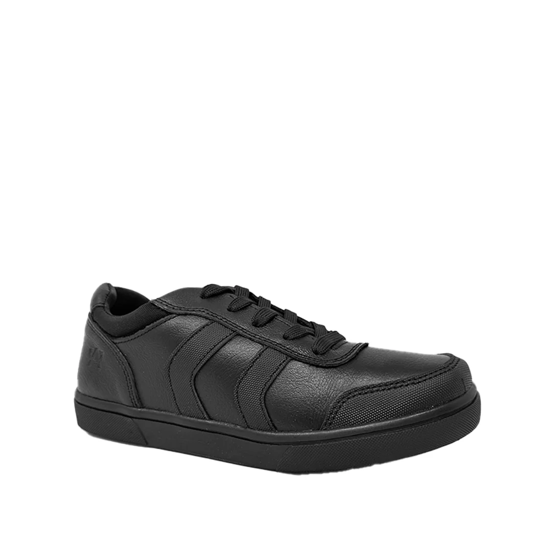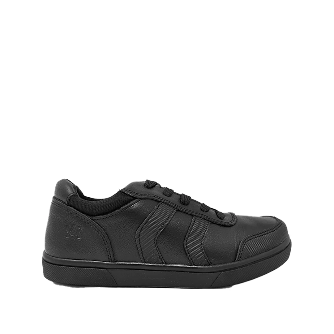 Tennis escolares Alfie para niño color negro, confeccionados en cuero. Su diseño moderno con suela de goma ofrece agarre, flexibilidad y durabilidad.