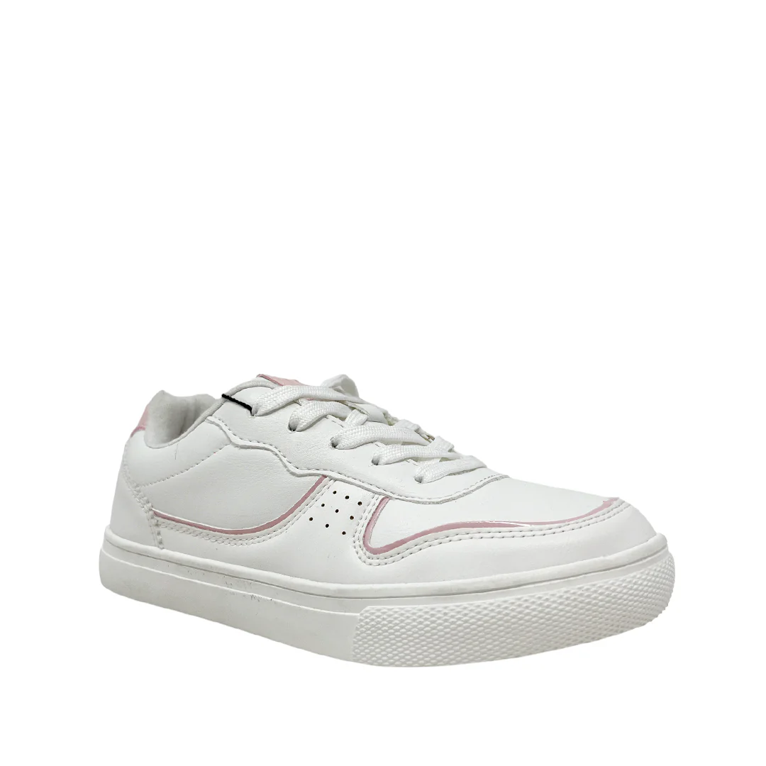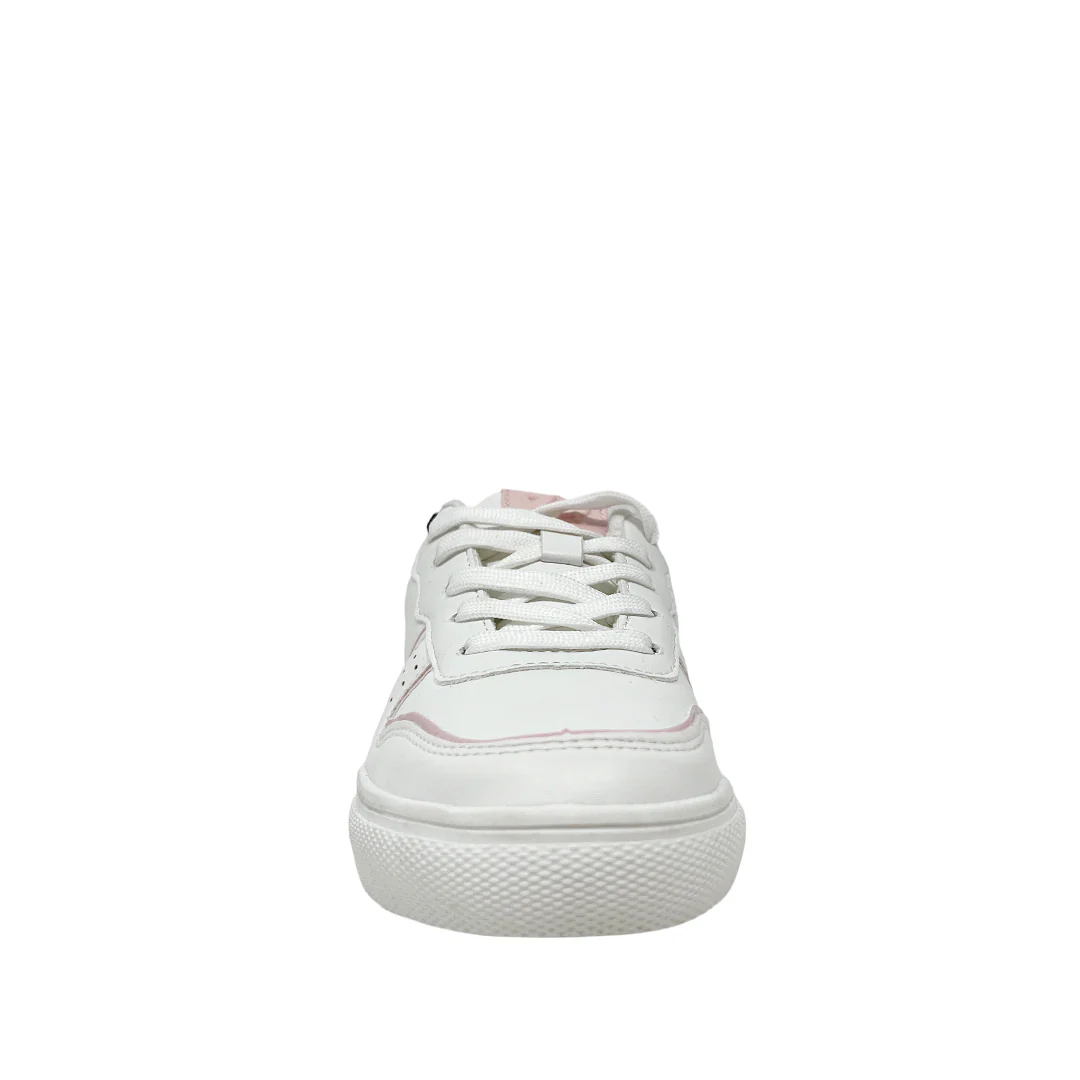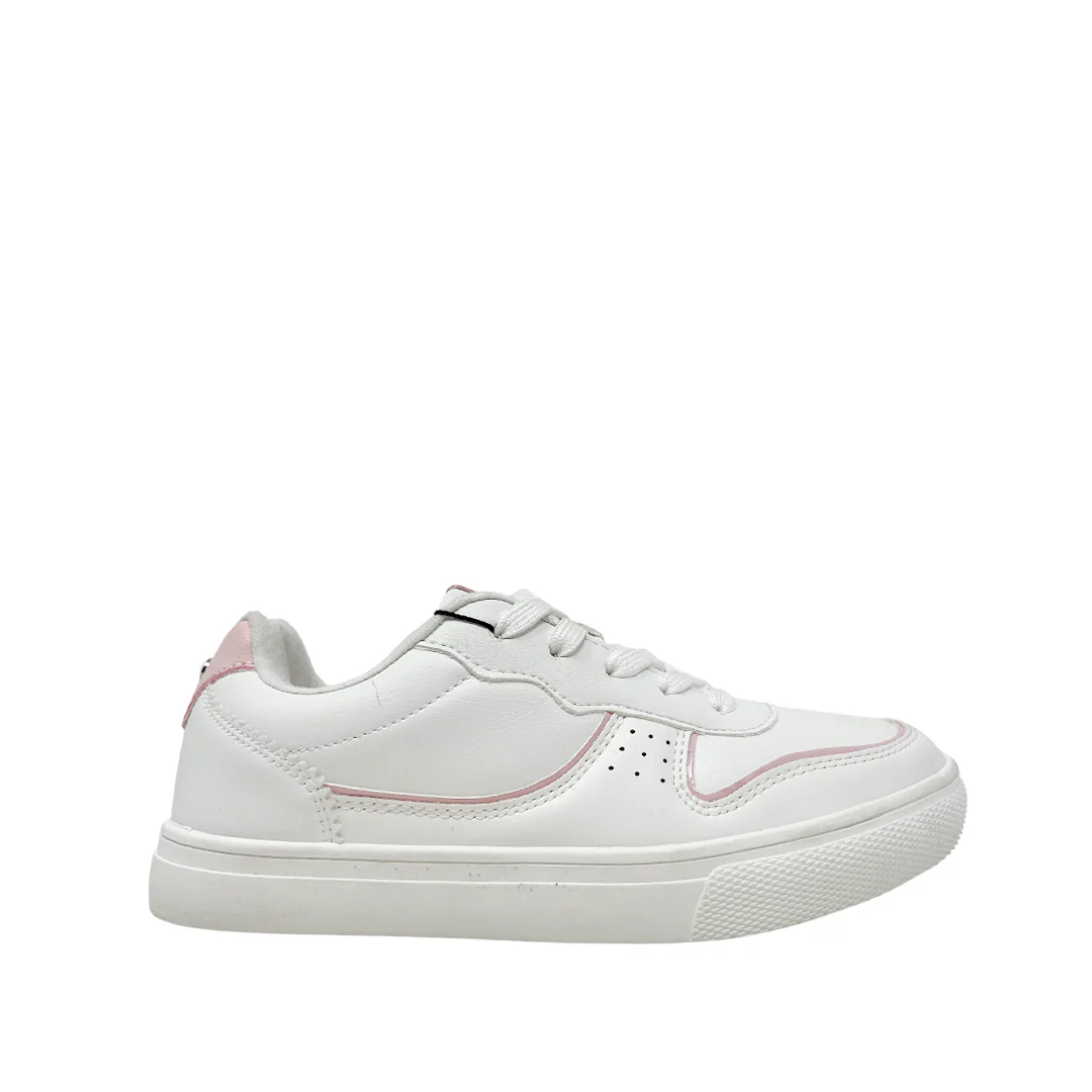 Tennis escolares Asha para niña color blanco y rosado, confeccionados en material sintético. Ofrecen un diseño moderno, suela flexible y detalles bicolor.