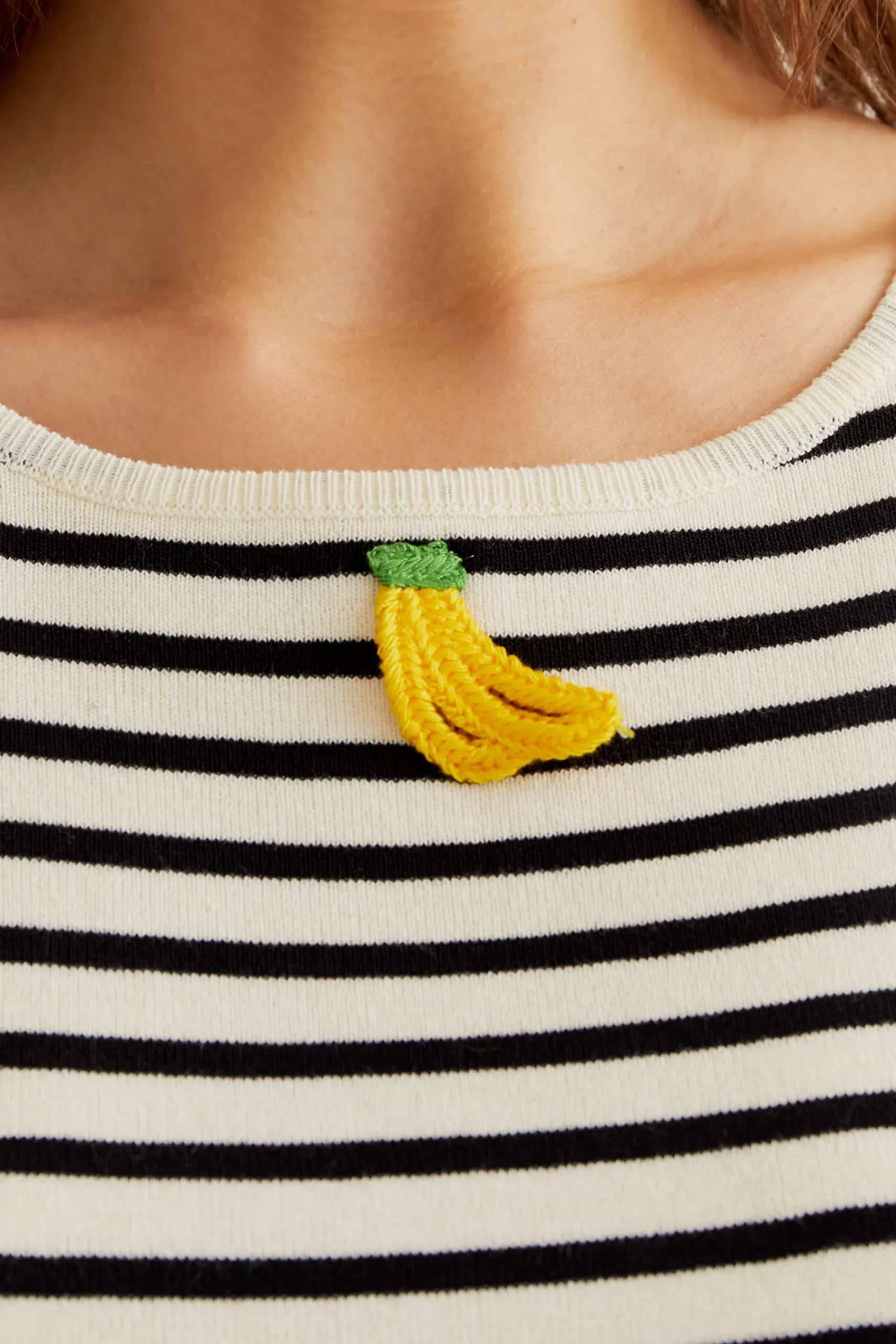 Sé el primero en valorar “Top de rayas blanco y negro con bordado de banana”