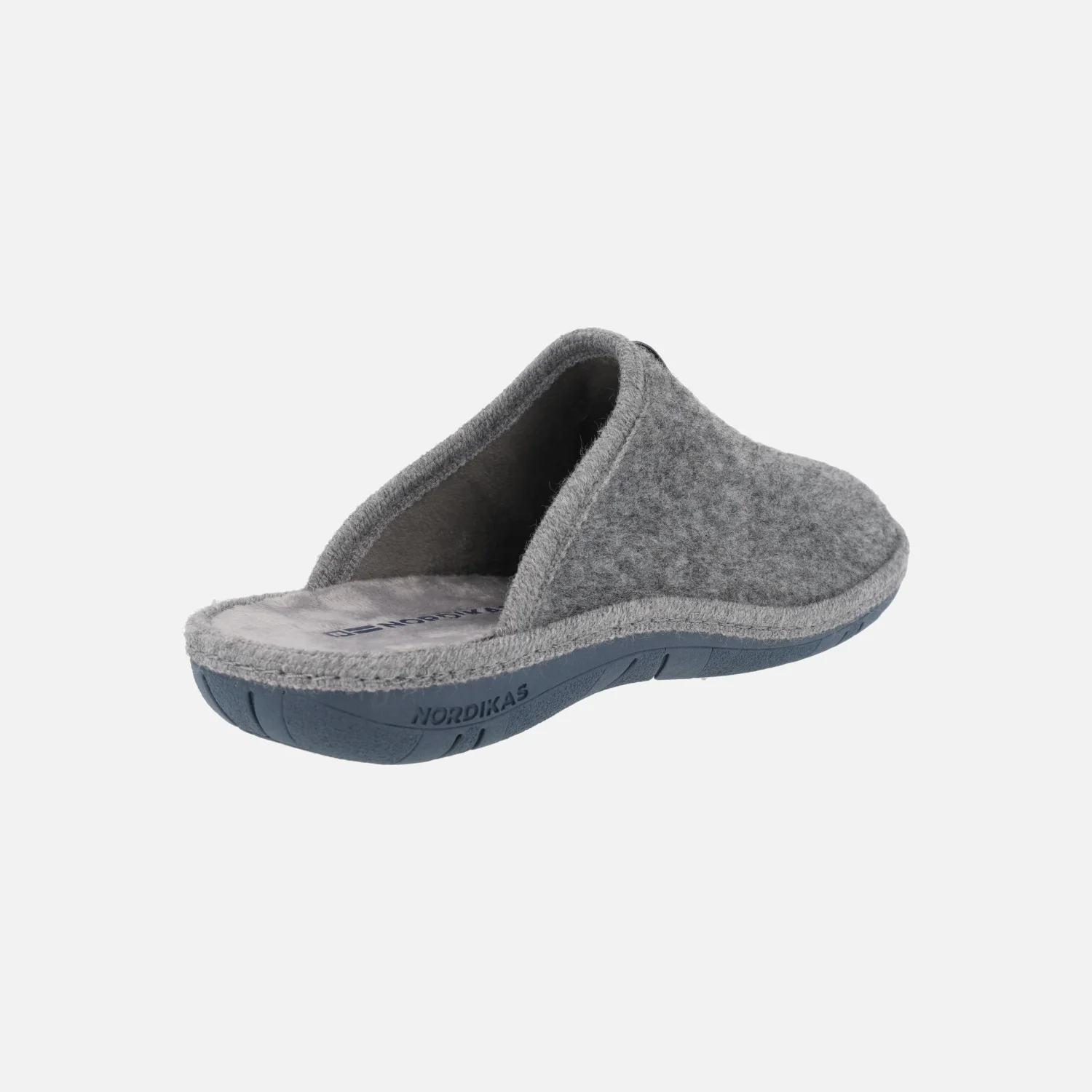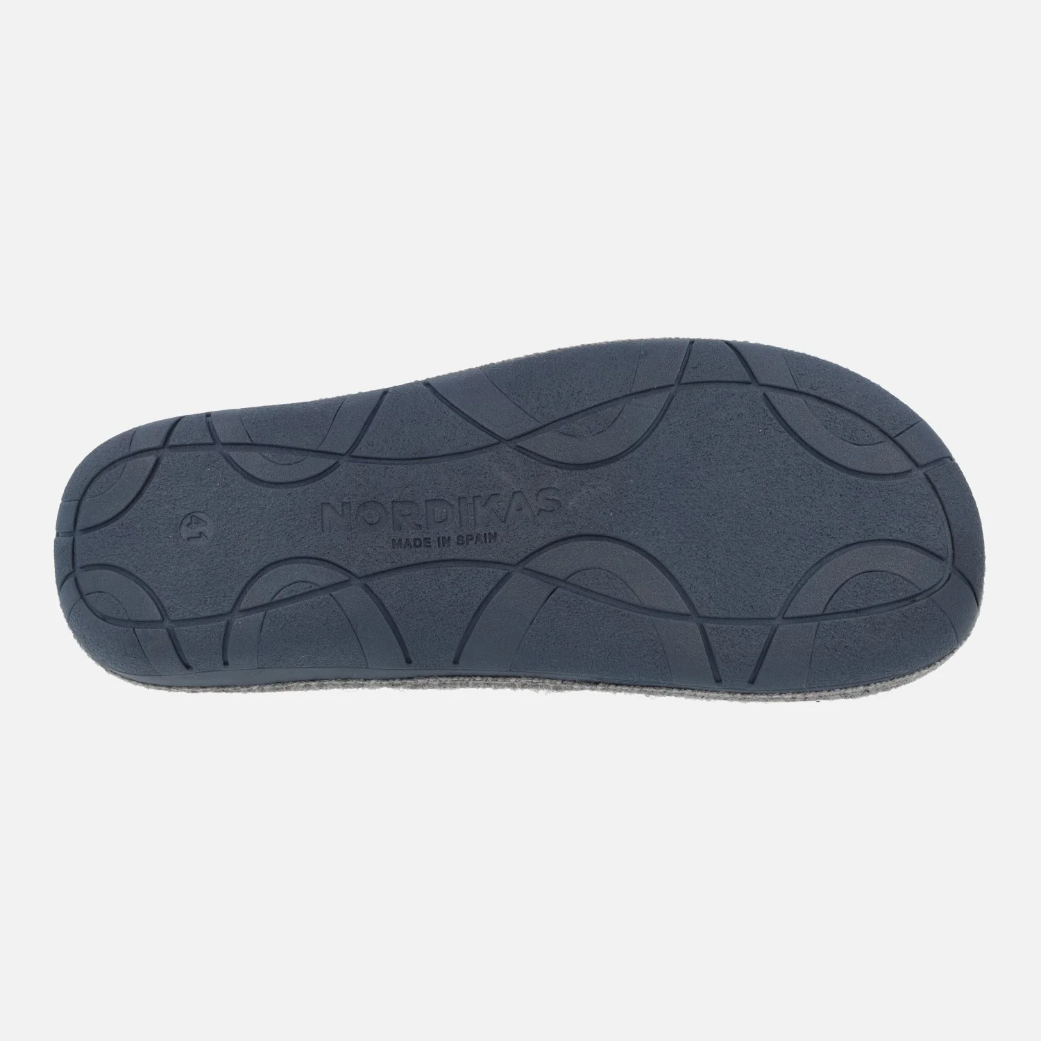 Zapatillas de casa para hombre de la marca Nordikas modelo 1728 Boreal en tejido Tirol gris. Zapatillas descalzas, elaboradas en tejido afelpado con logo cosido en el empeine. interiores en tejido afelpado. Piso de goma. Made in Spain.