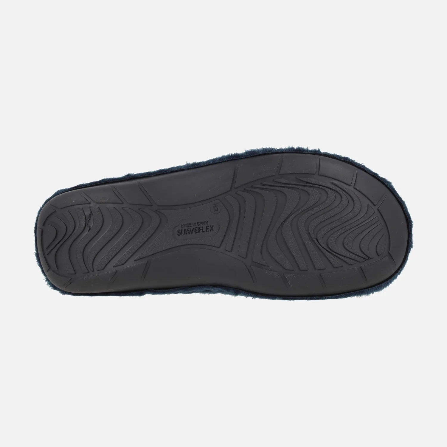 Zapatillas de casa abiertas de talón para hombre de la marca Suaveflex, modelo 200 Marino. Zapatillas de casa elaboradas en tejido pelo en tonos azules y amarillos, con diseño de Homer Simpson y jarra de cerveza. Interior textil suave con plantillas extraíbles. Piso sintético. Made in SPain.