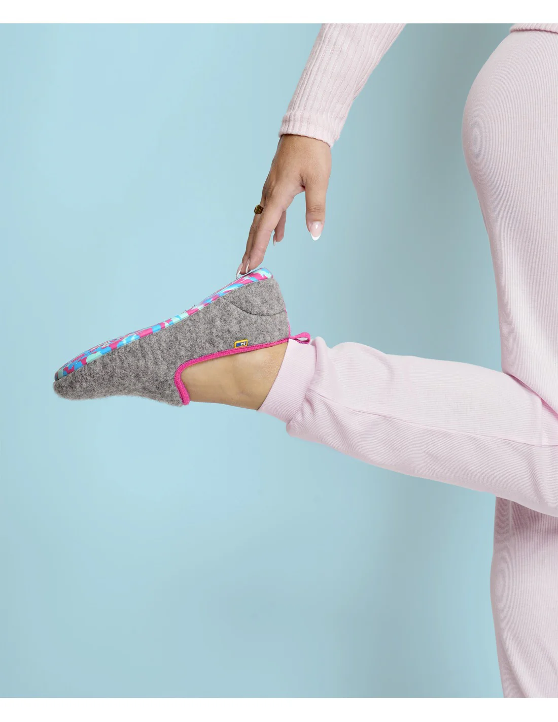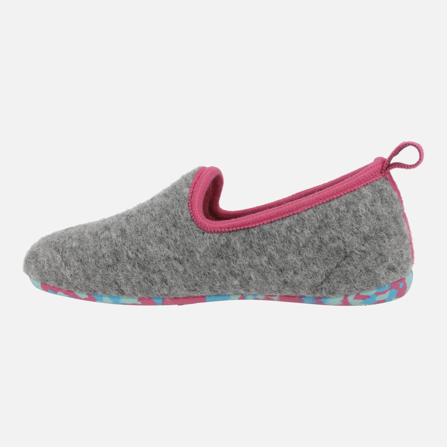 Zapatillas de casa para mujer de la marca Nordikas, modelo Elastik sra 2610 Dinamic, disponibles en gris y en malva (rosa). Zapatillas cerradas elaboradas en tejido, con suela de goma plana multicolor. Interior textil con plantillas extraíbles.