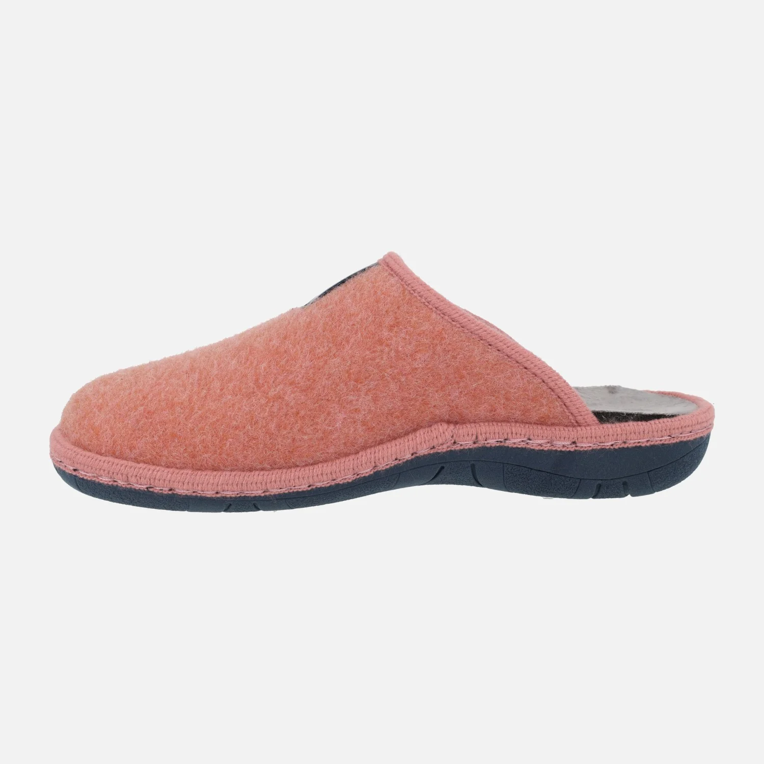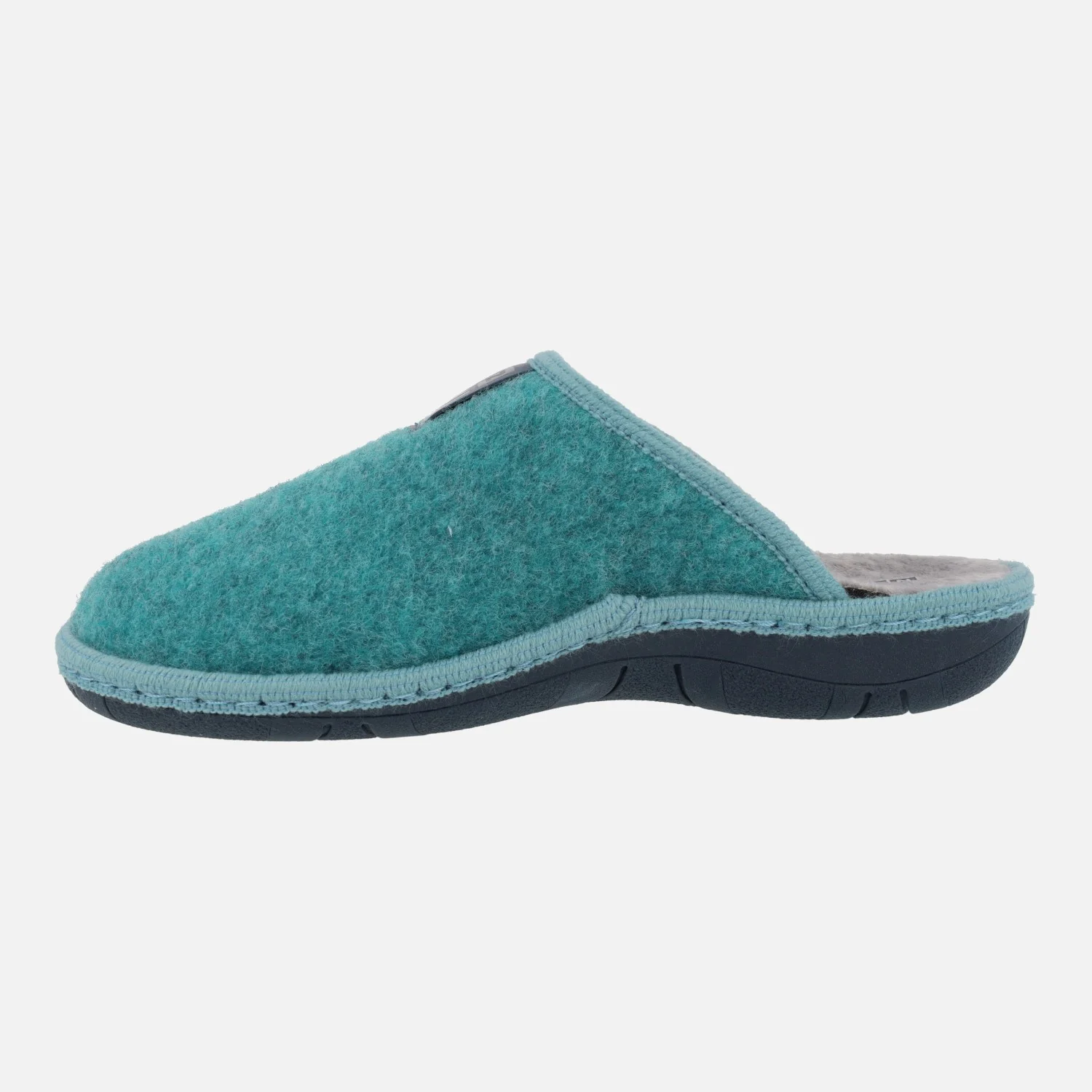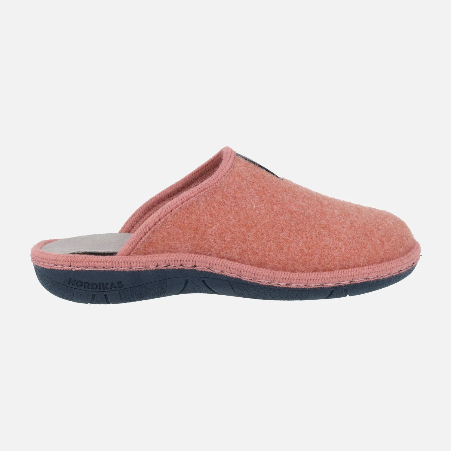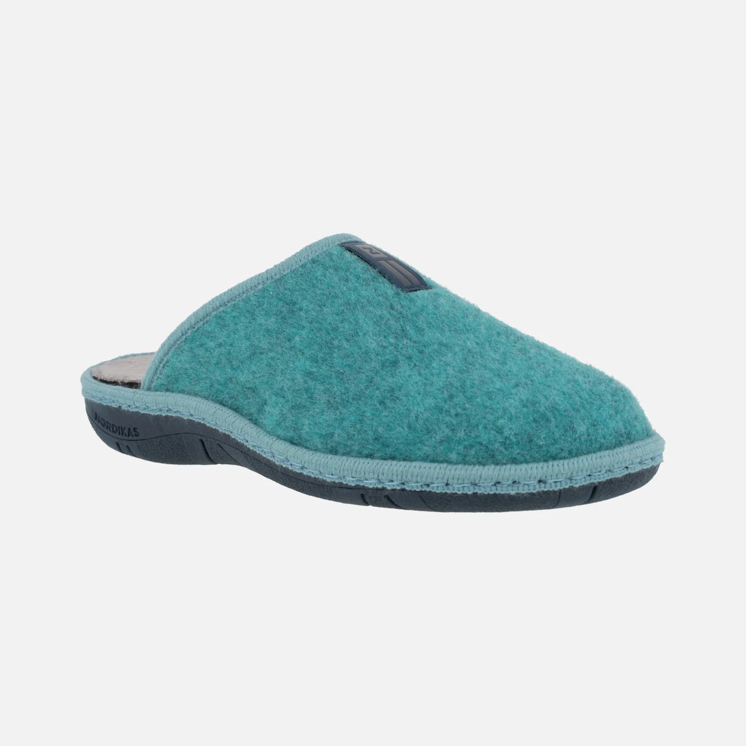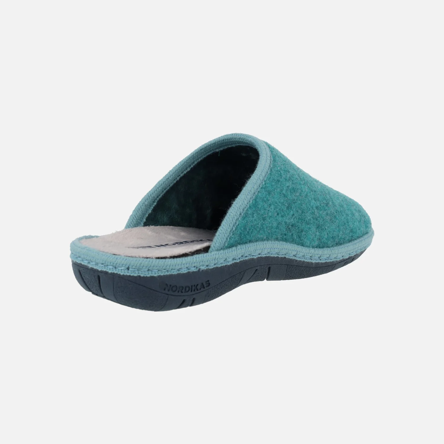 Zapatillas de casa para mujer de la marca Nordikas, modelo Boreal 1718 Tirol, disponibles en azul petróleo, coral y gris. Zapatillas de casa descalzas de talón, elaboradas en tejido fieltro, con interior afelpado. Piso de goma ligero, de 3 cms de altura trasera.