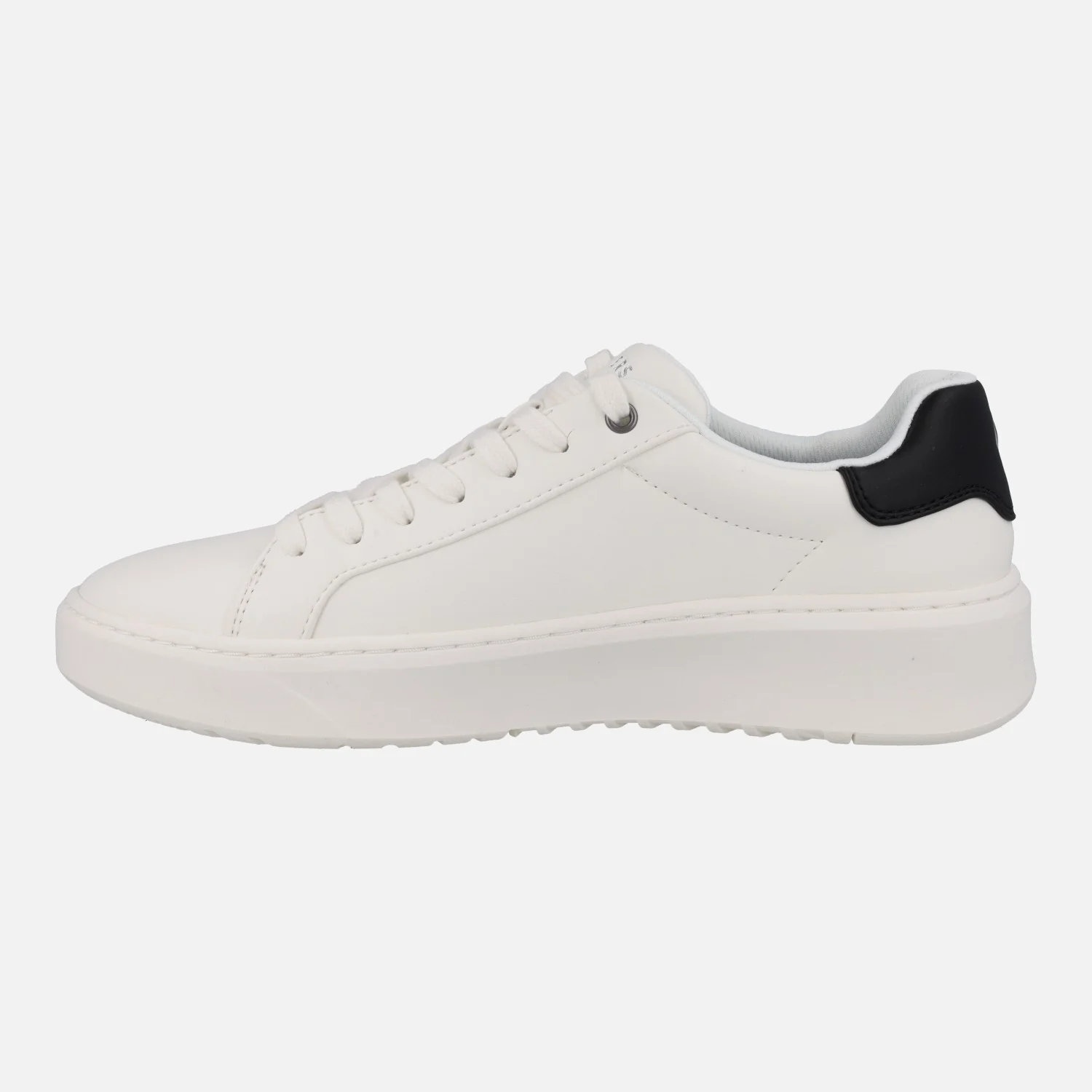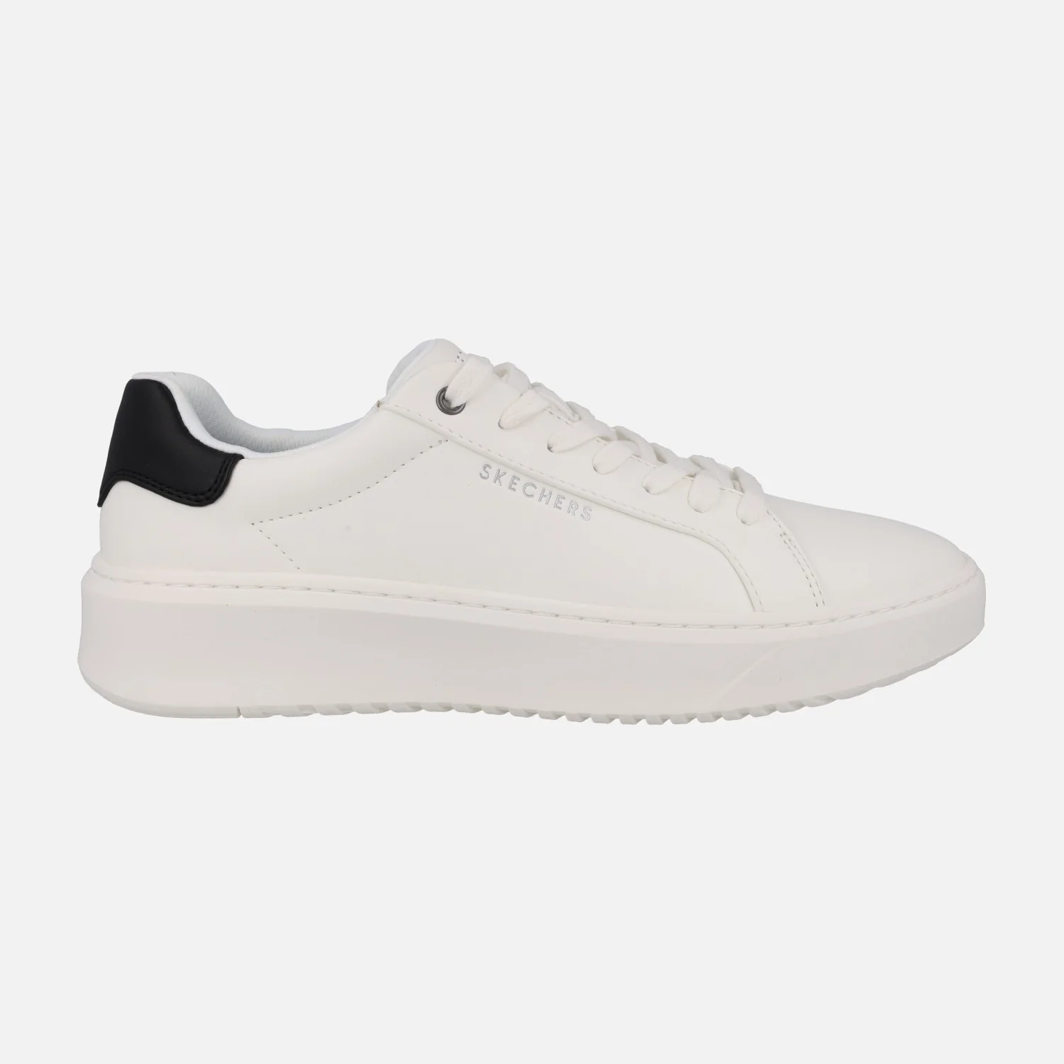 Zapatillas deportivas para hombre de la marca Skechers, modelo 183175 WHT Court Break Suit sneakers. Zapatillas blancas elaboradas en materiales sintéticos, con cierre de cordones. Talonera contrastada en negro. Interior textil. Logo Skechers bordado en el lado exterior. Piso sintético.