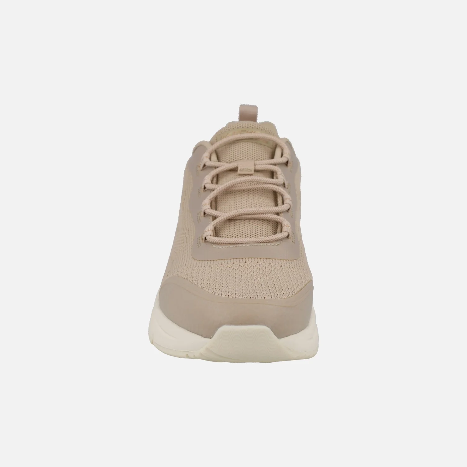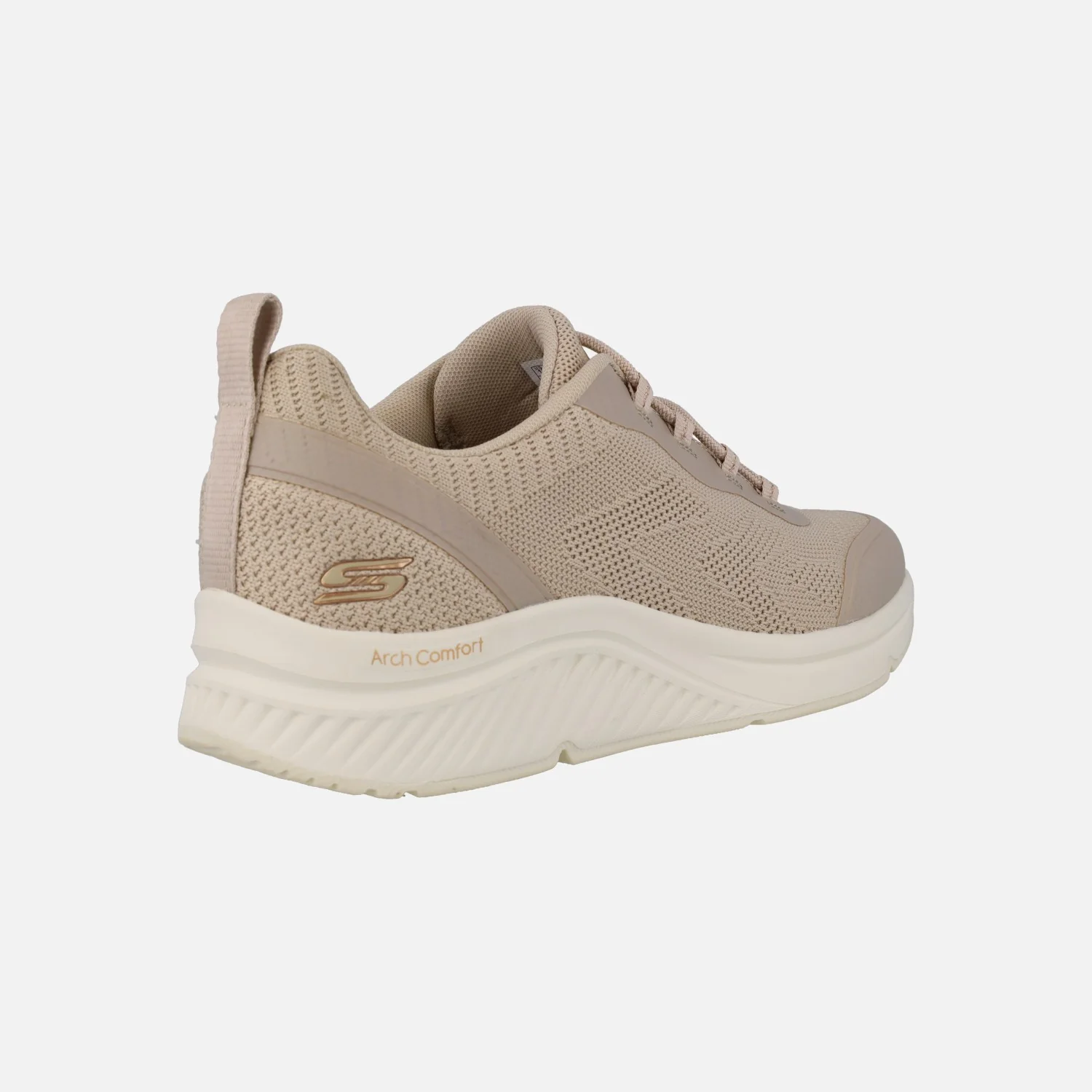 Zapatillas deportivas Bobs Arch Comfort B Sweet – A Pinch Natura. Sneakers elaboradas en tejido y sintéticos, en color beige, con cierre de cordones elásticos. Interior textil con plantillas Memory foam. Piso ligero de goma, con 4 cm de altura trasera (2,5 cm parte delantera). Amortiguación ARCH COMFORT.