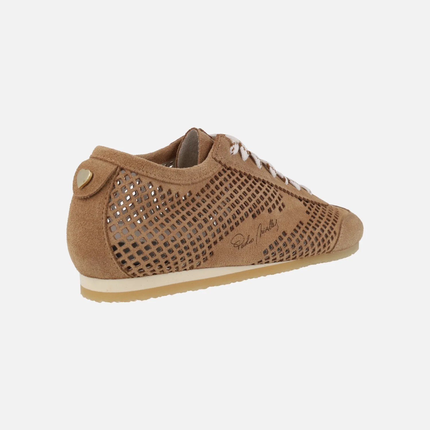 Zapatillas deportivas nueva colección Pedro Miralles línea Weekend, modelo 16248 Velour avena. Zapatillas elaboradas en piel serraje marrón con detalle de picados, cierre de cordones. Plantillas extraíbles de aproximadamente 1,5 cm de grosor. Piso sintético de 1,5 cm de altura trasera, bicolor.