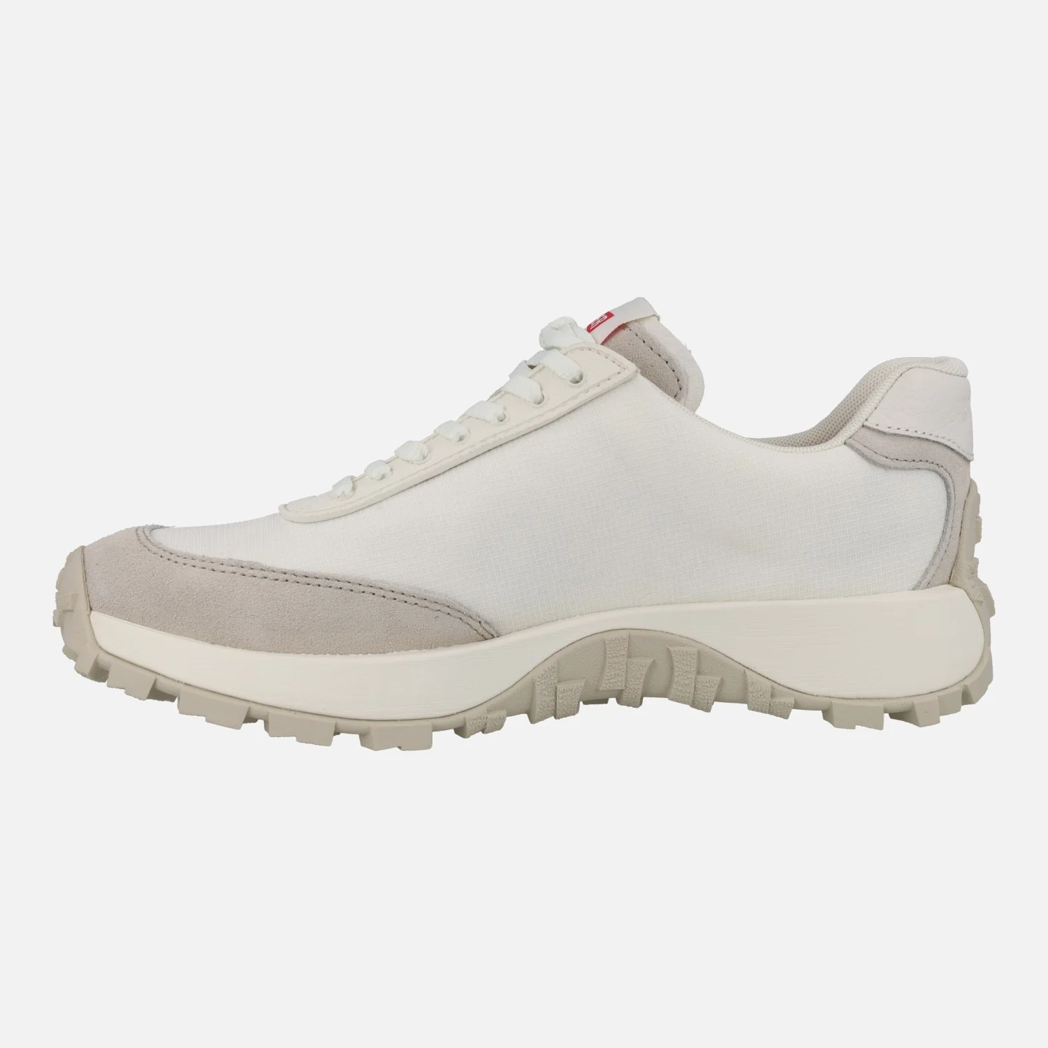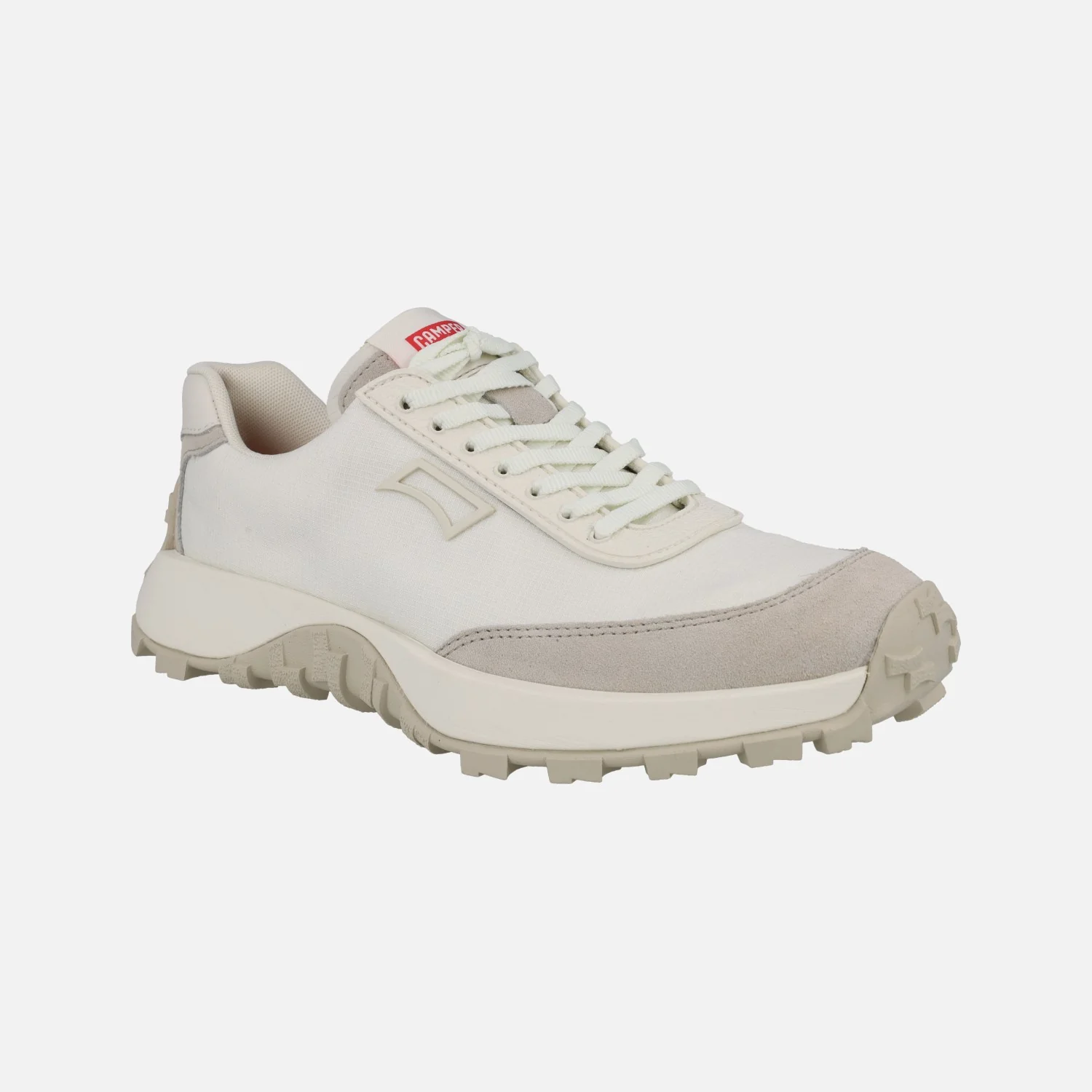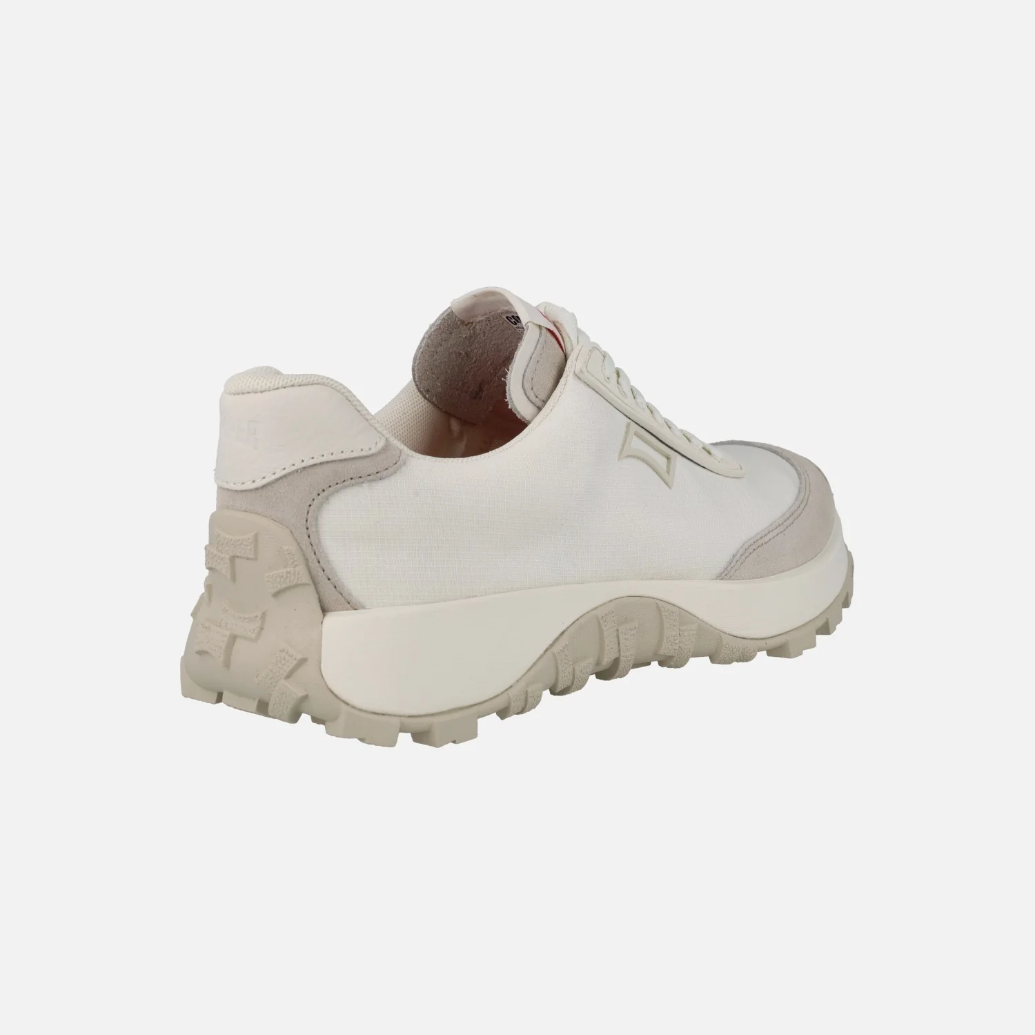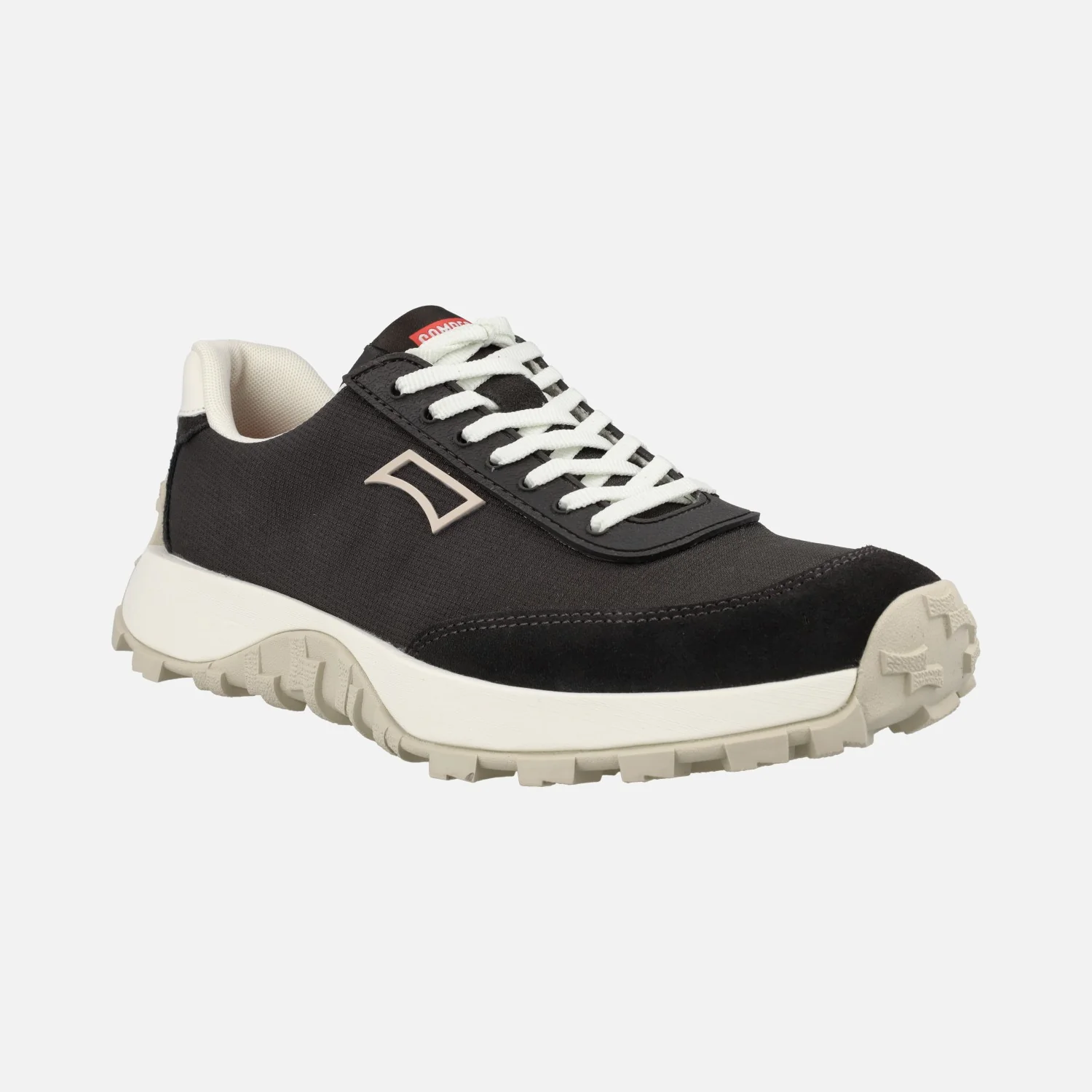 Deportivas para hombre Camper K100864 Drift Trail en combinado blanco y en combinado negro. Sneakers elaboradas en tejido poliéster reciclado, con alguna pieza en nobuck y piel. Interior textil. Plantillas extraíbles Ortholite, para mayor amortiguación. Piso de goma Vibram, de gran agarre y resistencia.