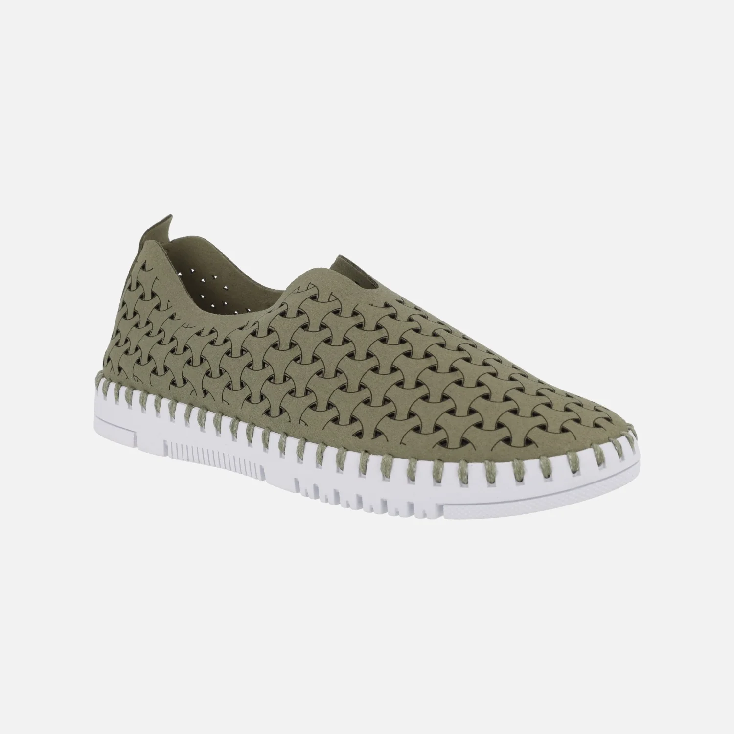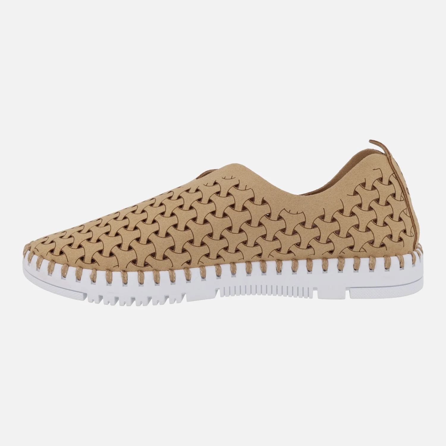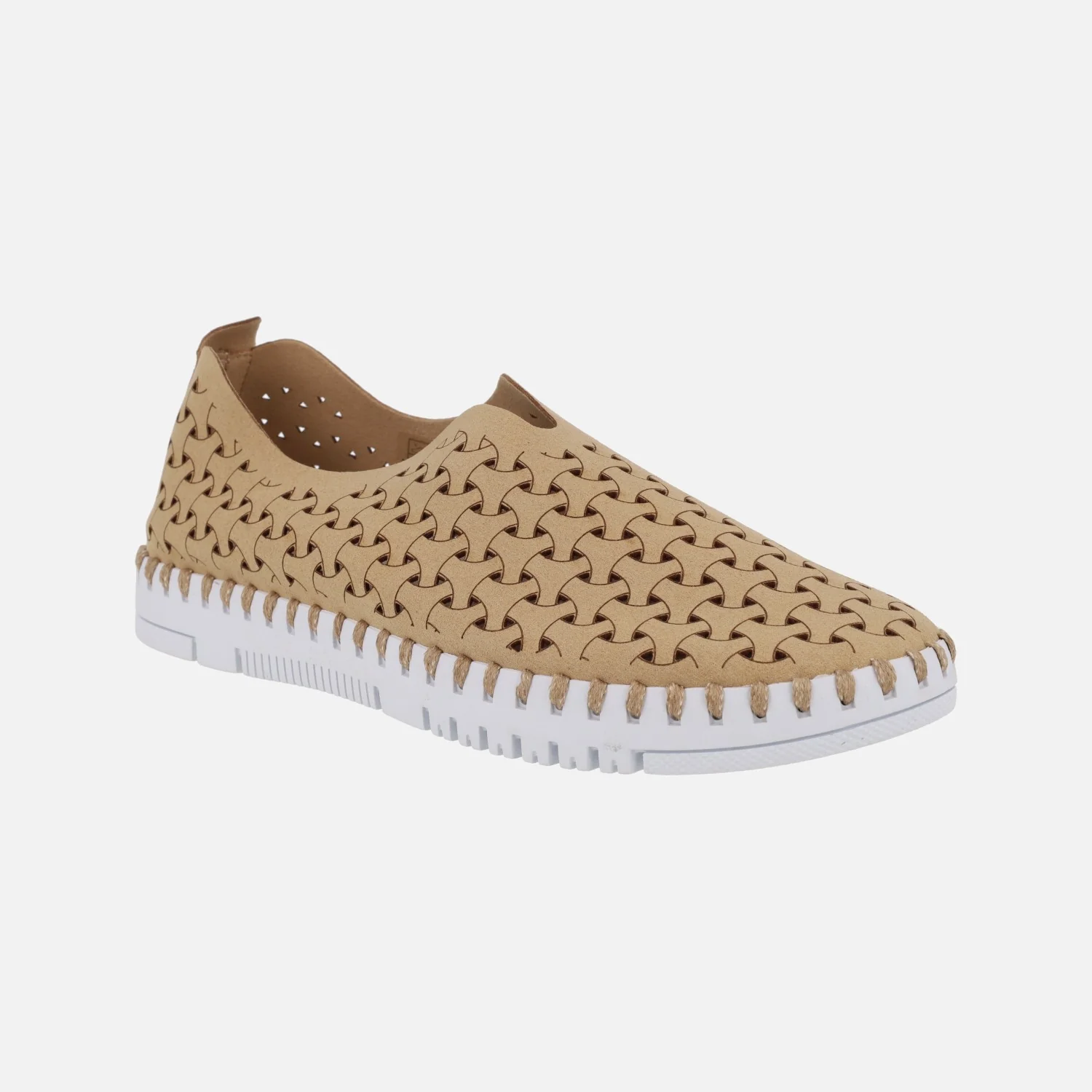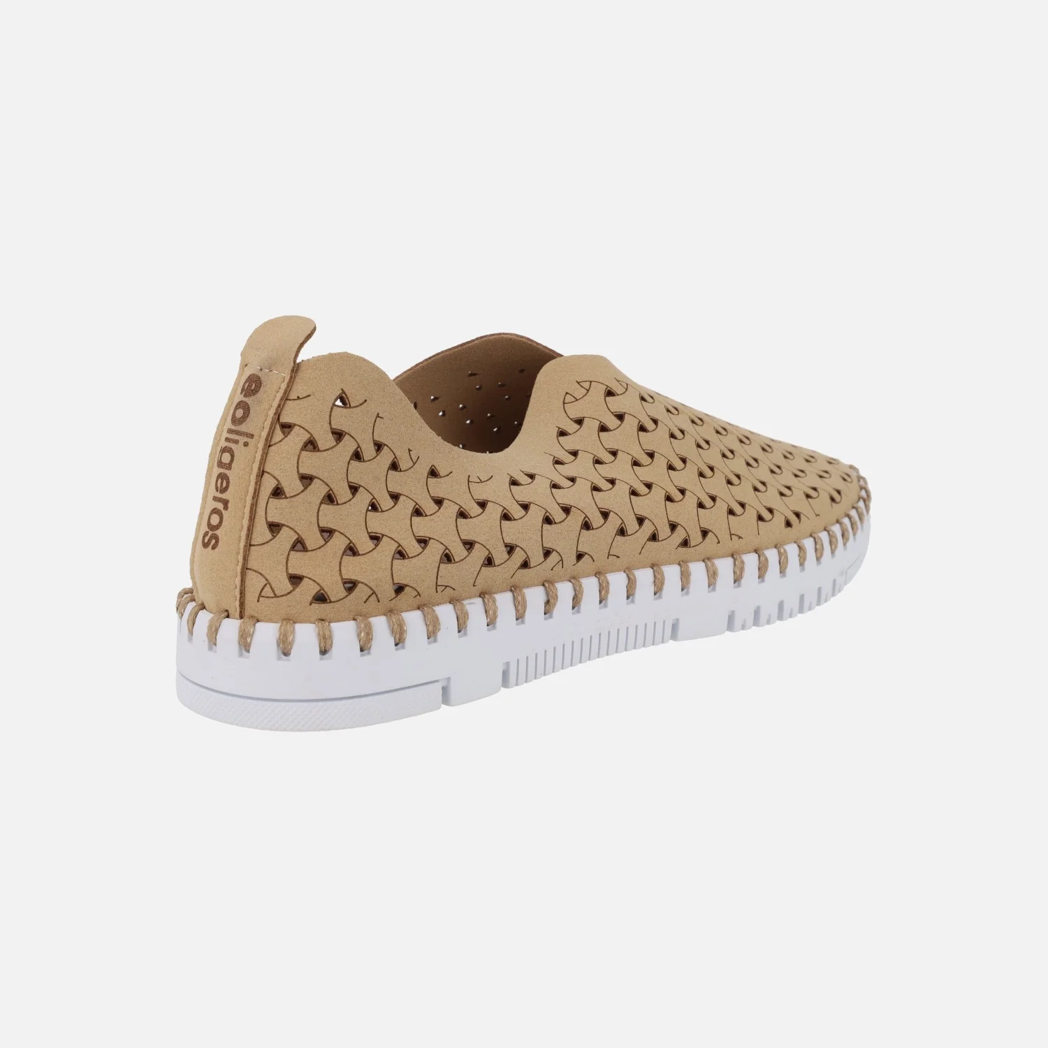 Zapatillas de estilo deportivo para mujer de la marca Ecoligeros, modelo Tessy. Zapatillas sin cordones, elaboradas en materiales sintéticos, con dibujos a láser y picados. Detalle de logo «Ecoligeros» en el talón. Interior mixto de piel y sintéticos, con plantillas extraíbles. Piso de goma muy ligero, cpn 2,5 cms de altura trasera (2 cms en la parte delantera). Disponibles en camel, verde kaki y azul jeans.