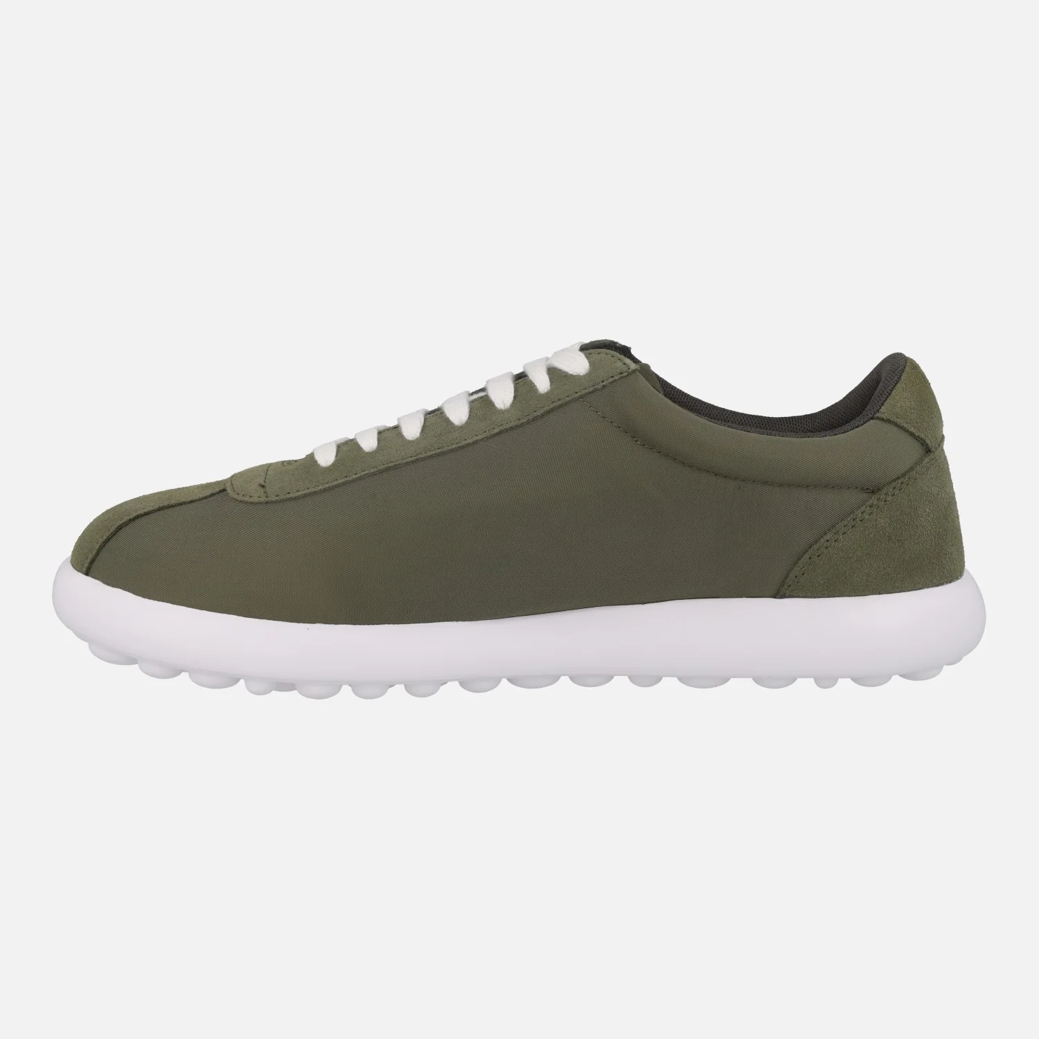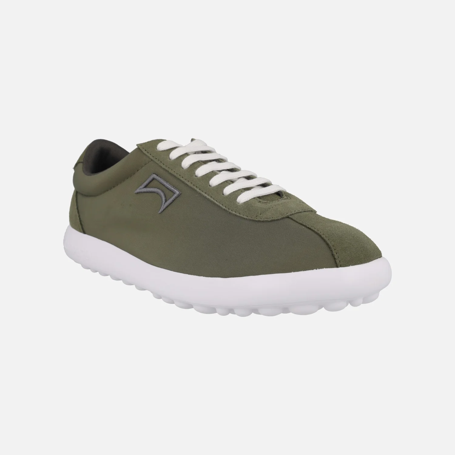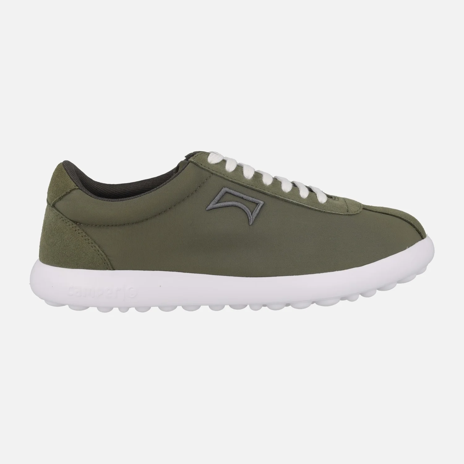 Sneakers casual para hombre de la marca Camper, modelo Pelotas XLITE K101019, disponibles en kaki (Romero) o negro (Meteor). Zapatillas deportivas elaboradas en tejido poliéster reciclado con piezas en piel serraje. Interior textil con plantillas de PU extraíbles. Piso de EVA muy ligero.