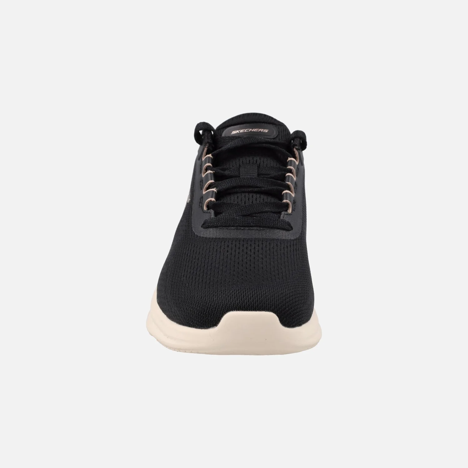 Preciosas zapatillas deportivas para mujer de la marca Skechers, modelo 150629 Skech Lite Pro 2.0 Brilliant Shimmer BKRG. Zapatillas elaboradas en tejido negro con detalle de brillo oro en la talonera. Cierre de cordones textiles. Interior textil con planta Memory foam, almohadillada. Suela sintética, ligera, de 3,5 cm de altura trasera (2 cm parte delantera).