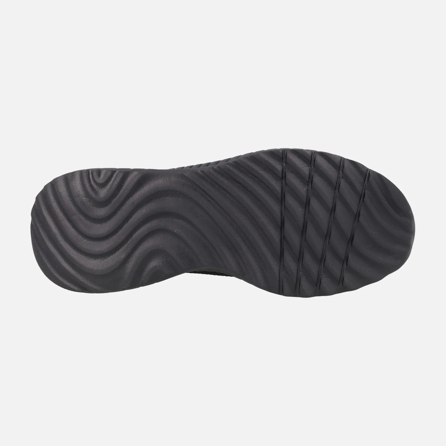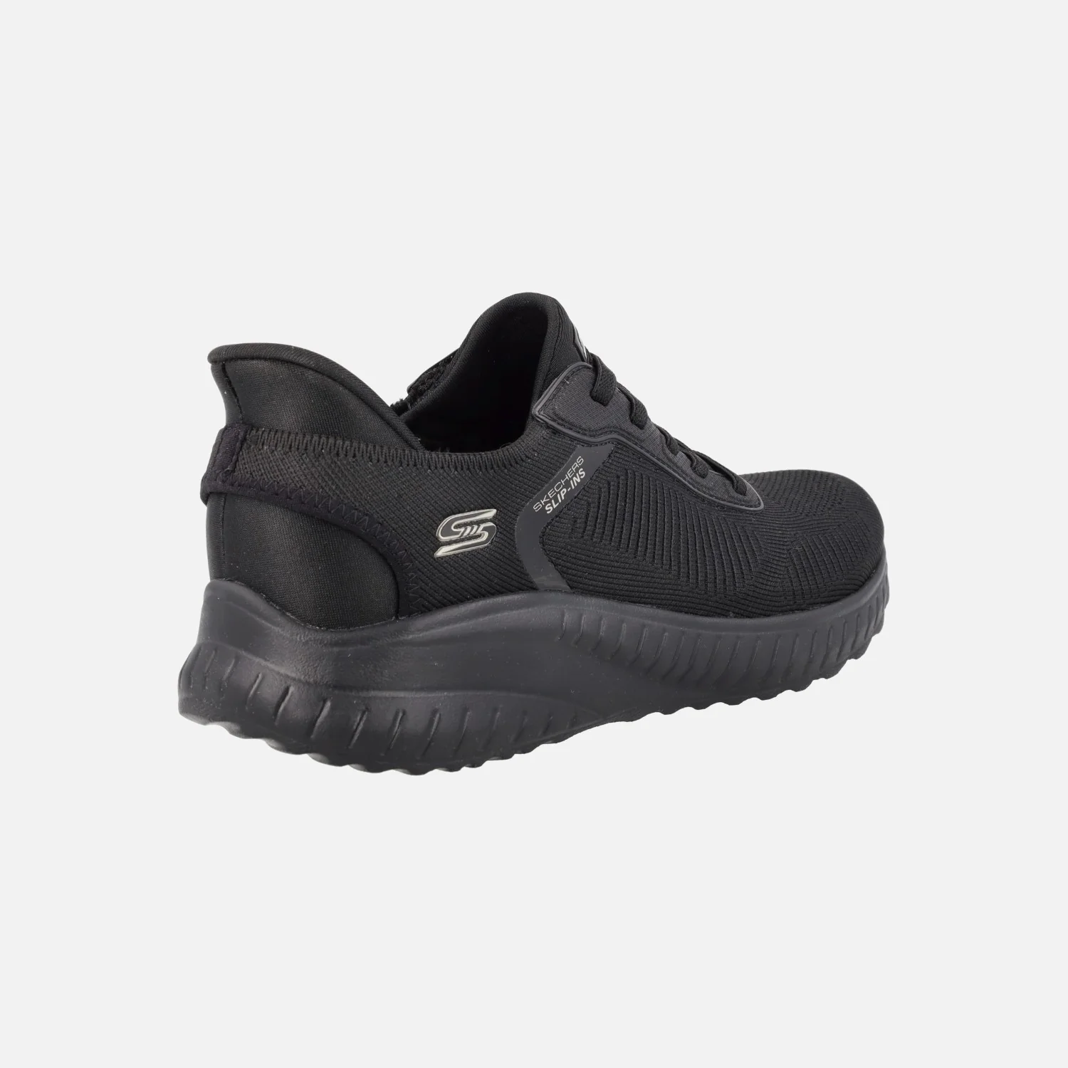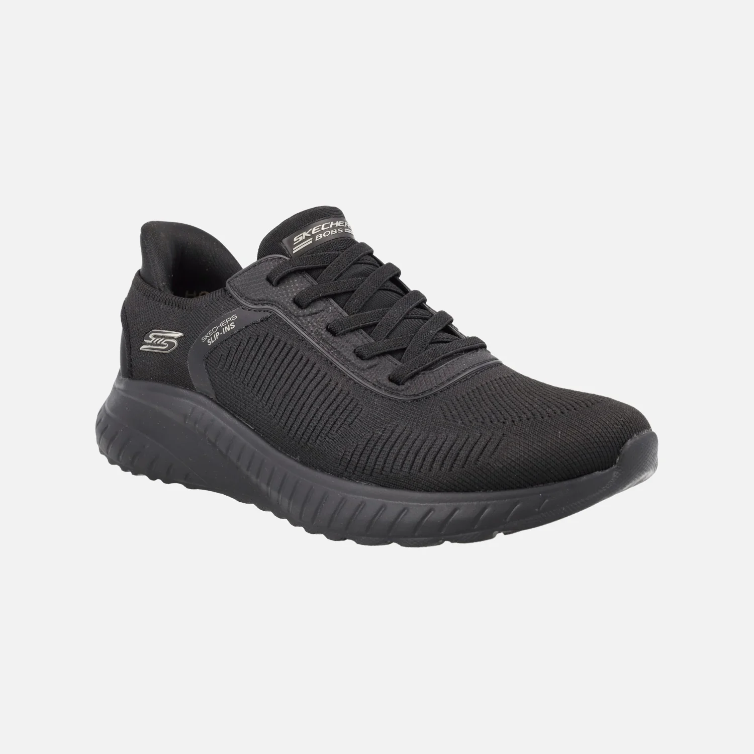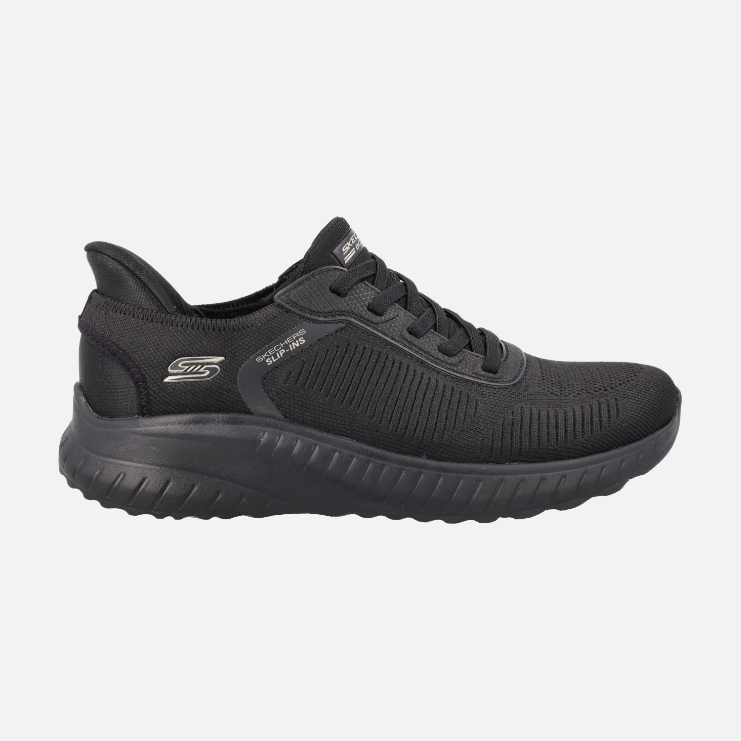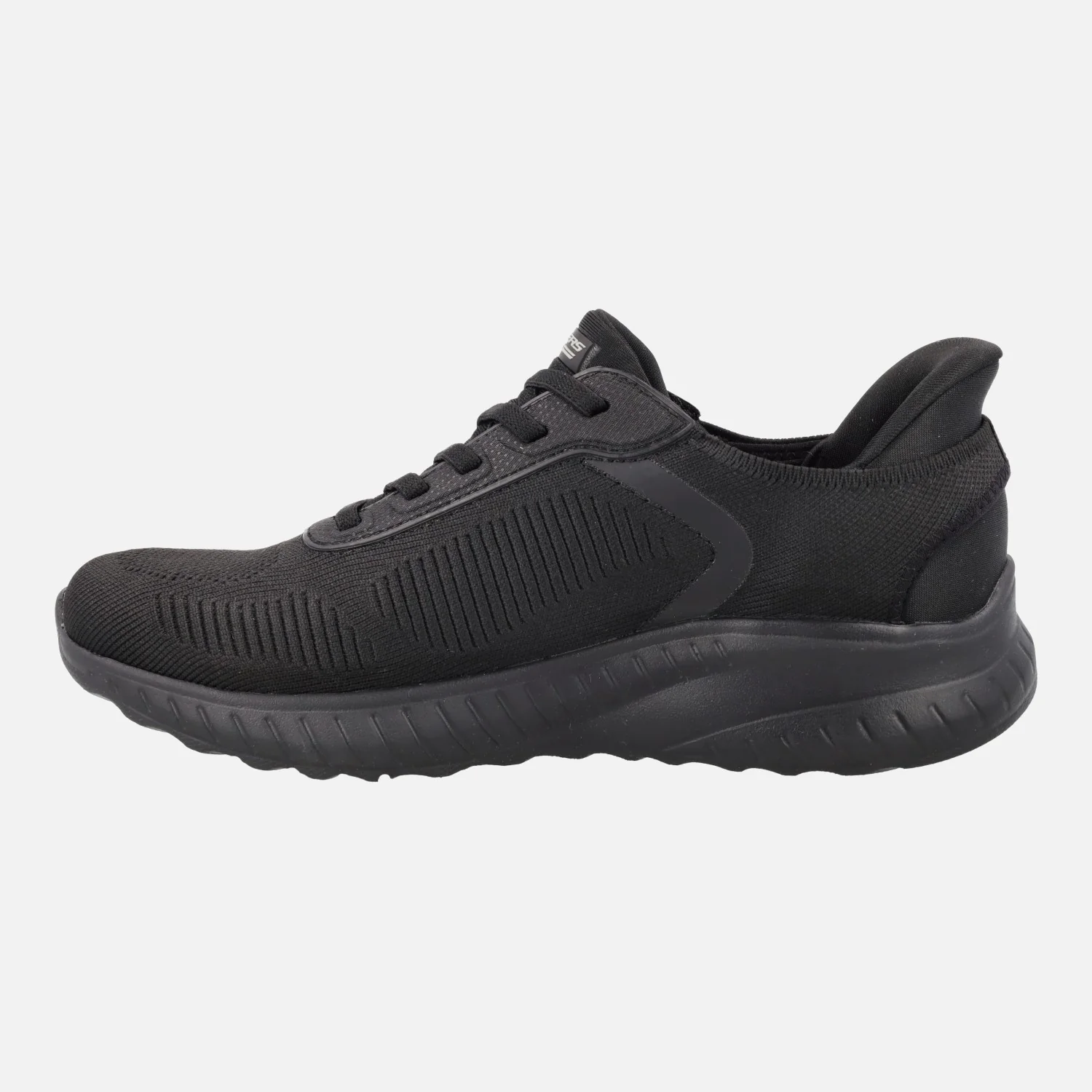 Zapatillas deportivas para mujer de la marca Skechers, modelo Slip Ins Bobs Sport Squad Chaos – Current Muse 117497. Zapatillas elaboradas en tejido malla con cordones elásticos. Sistema de calzado fácil Hands Free Slip Ins, que permite calzarlos cómodamente sin usar las manos. Interior textil, con plantillas Memory foam. Refuerzo en el talón Heel Pillow. Piso de goma muy ligero, de 4 cms de altura trasera (2 cms parte delantera).