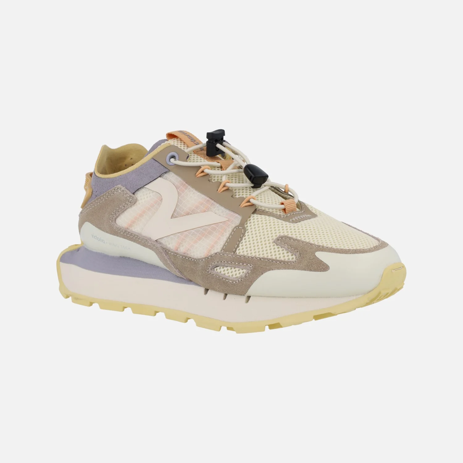 Preciosas deportivas para mujer de la marca Victoria modelo 8803112 Victoria Wing Tech Soft Colors. Zapatillas elaboradas en piel serraje y tejido, con cierre de cordones autoajustables. Interior textil. Piso de phylon moldeado y caucho plástico antideslizante, de 3 cms de altura trasera. Muy ligeras.