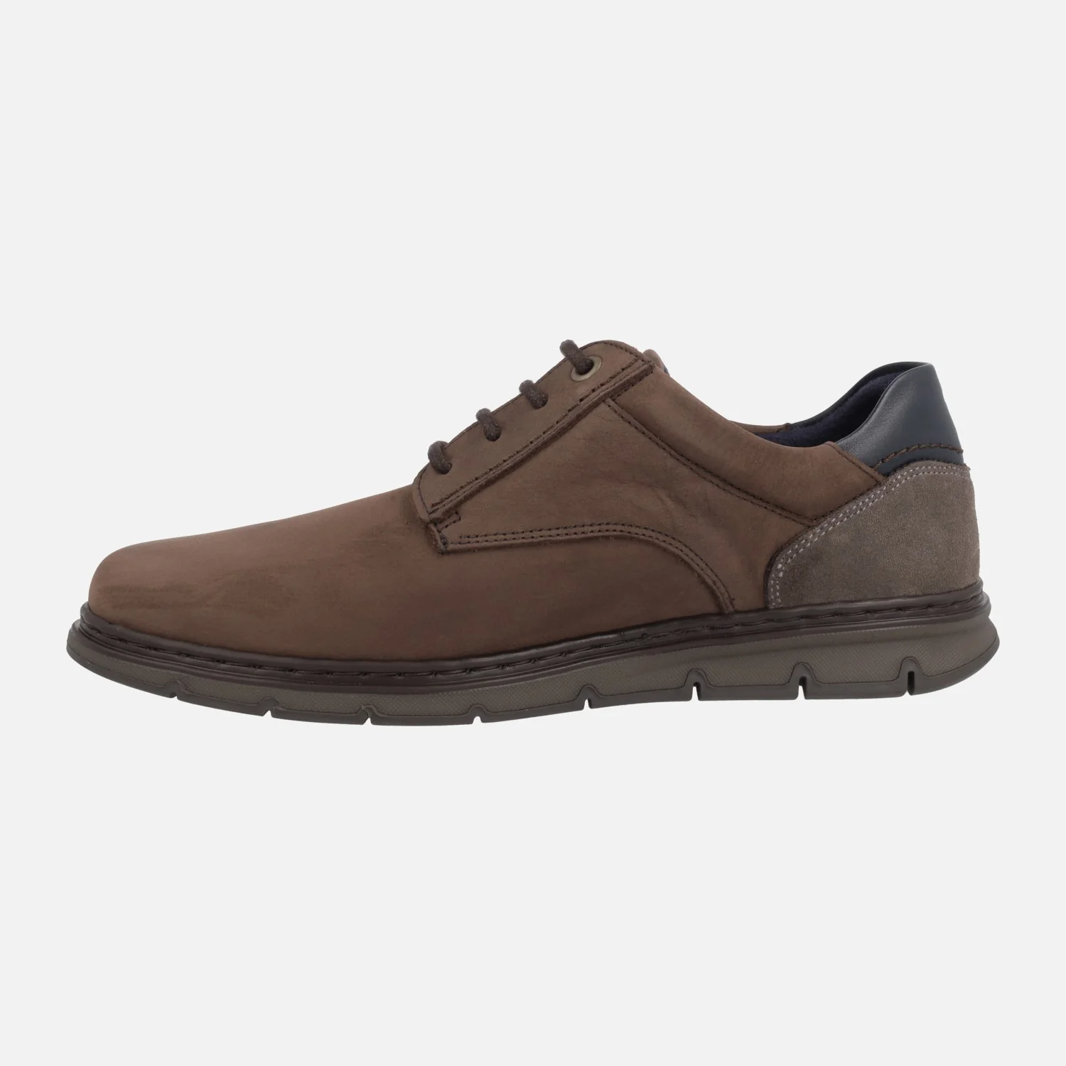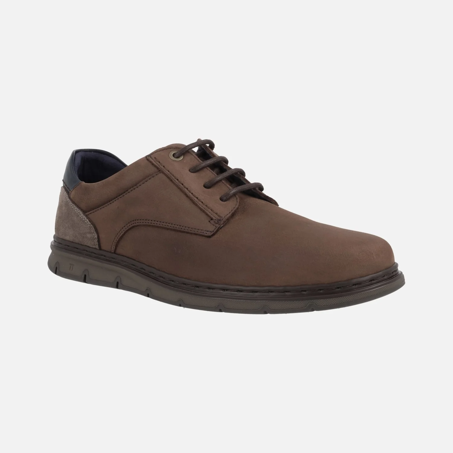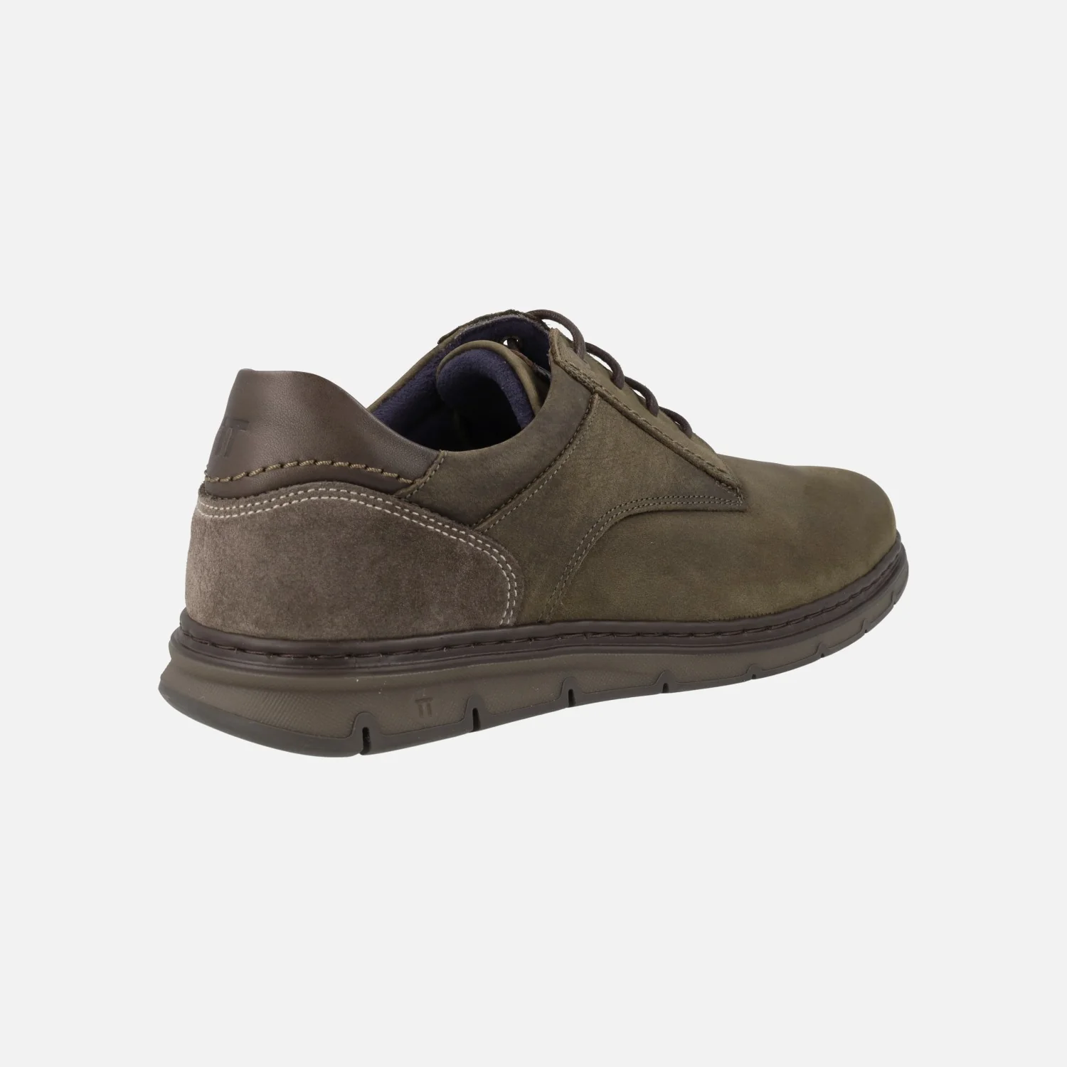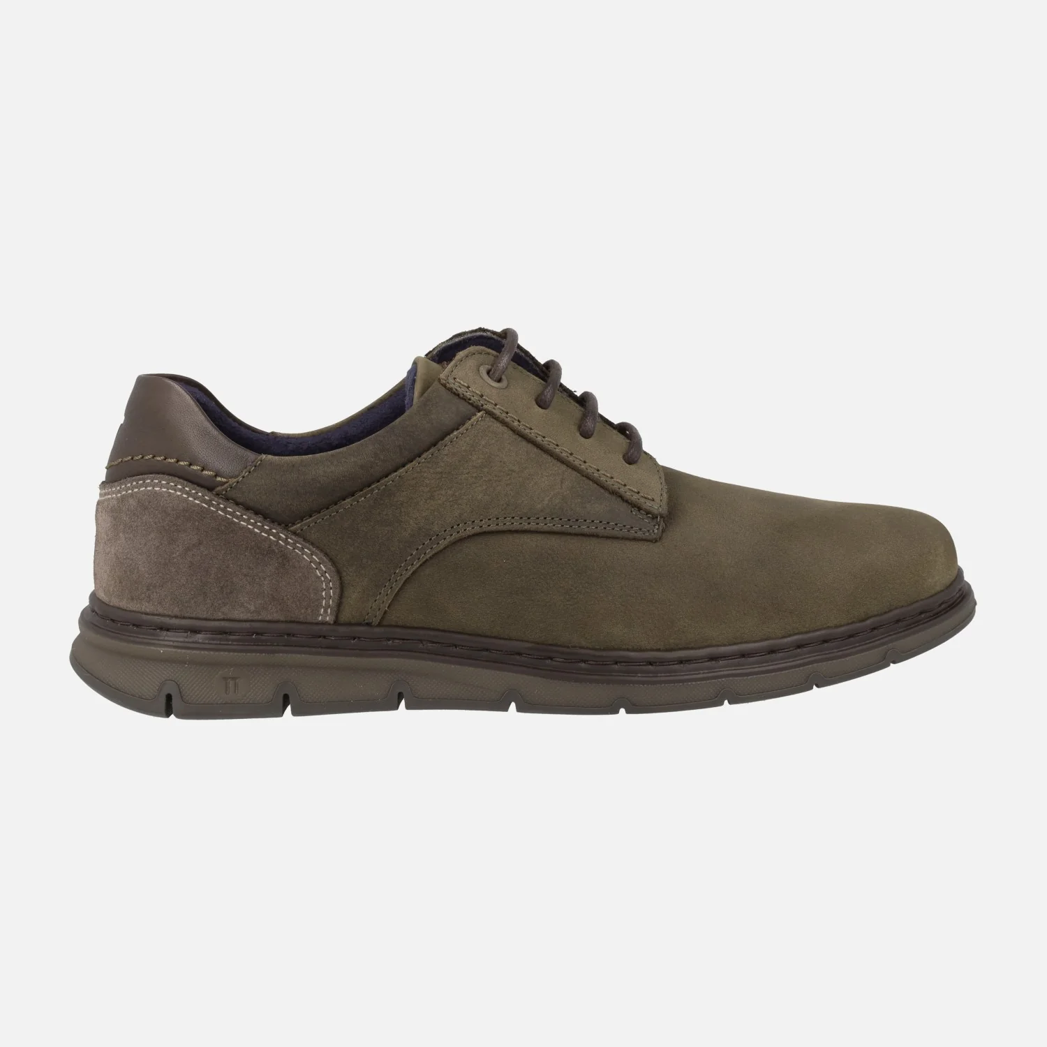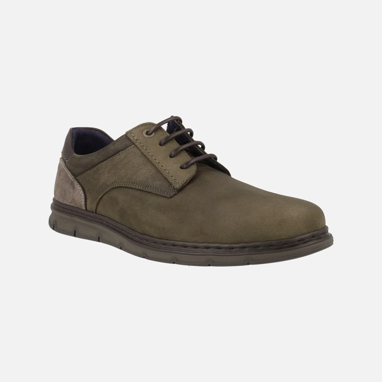 Zapatos de cordones estilo casual para hombre de la marca española Notton, modelo 2113. Zapatos disponibles en combinado kaki o en combinado marrón y elaborados en piel nobuck en su mayor parte, con detalles en serraje y piel lisa en la talonera. Interior textil, con plantillas extraíbles. Piso de goma Super flex, muy ligero y flexible. Made in Spain.