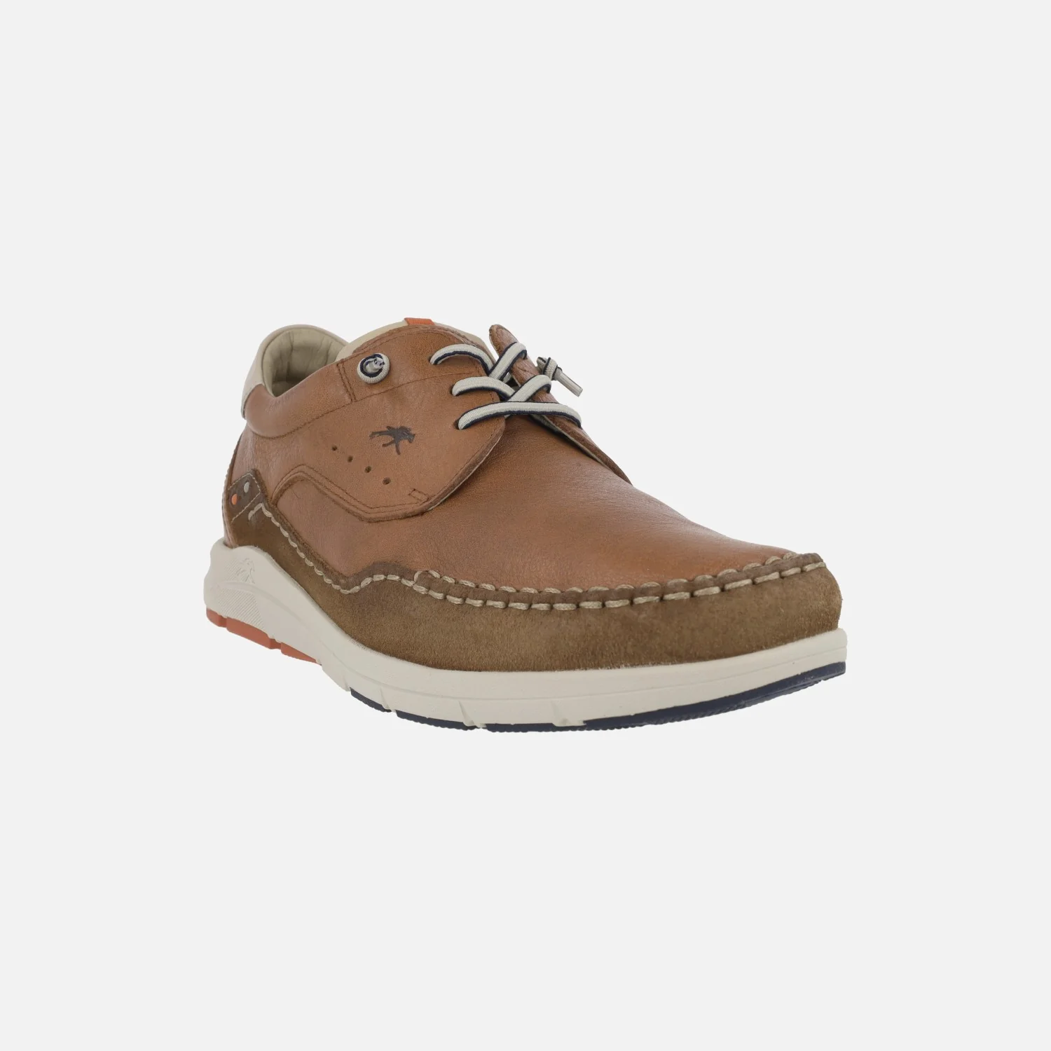 Zapatos confort para hombre de la marca Fluchos modelo F1986 Cuero. Zapatos de piel color cuero, con detalle beige en el talón. Pieza de serraje marrón en la parte delantera. Cordones elásticos. Interior textil con plantillas extraíbles. Piso de EVA. Tecnología LIGHT.