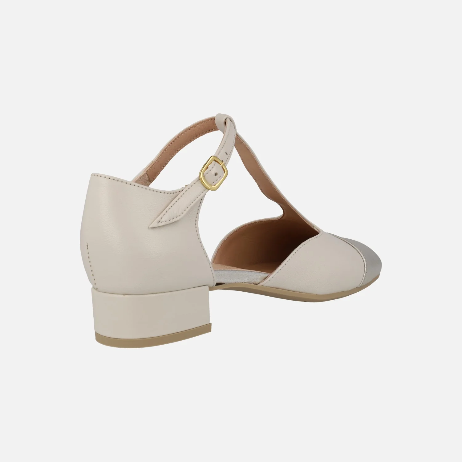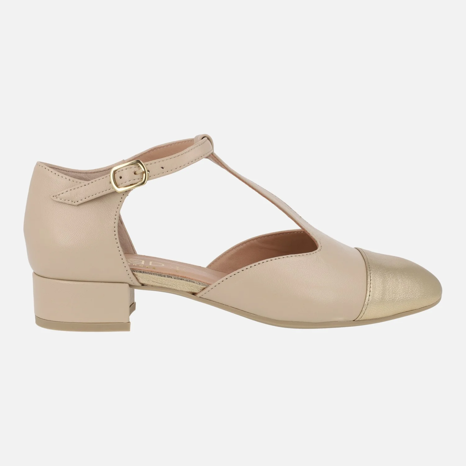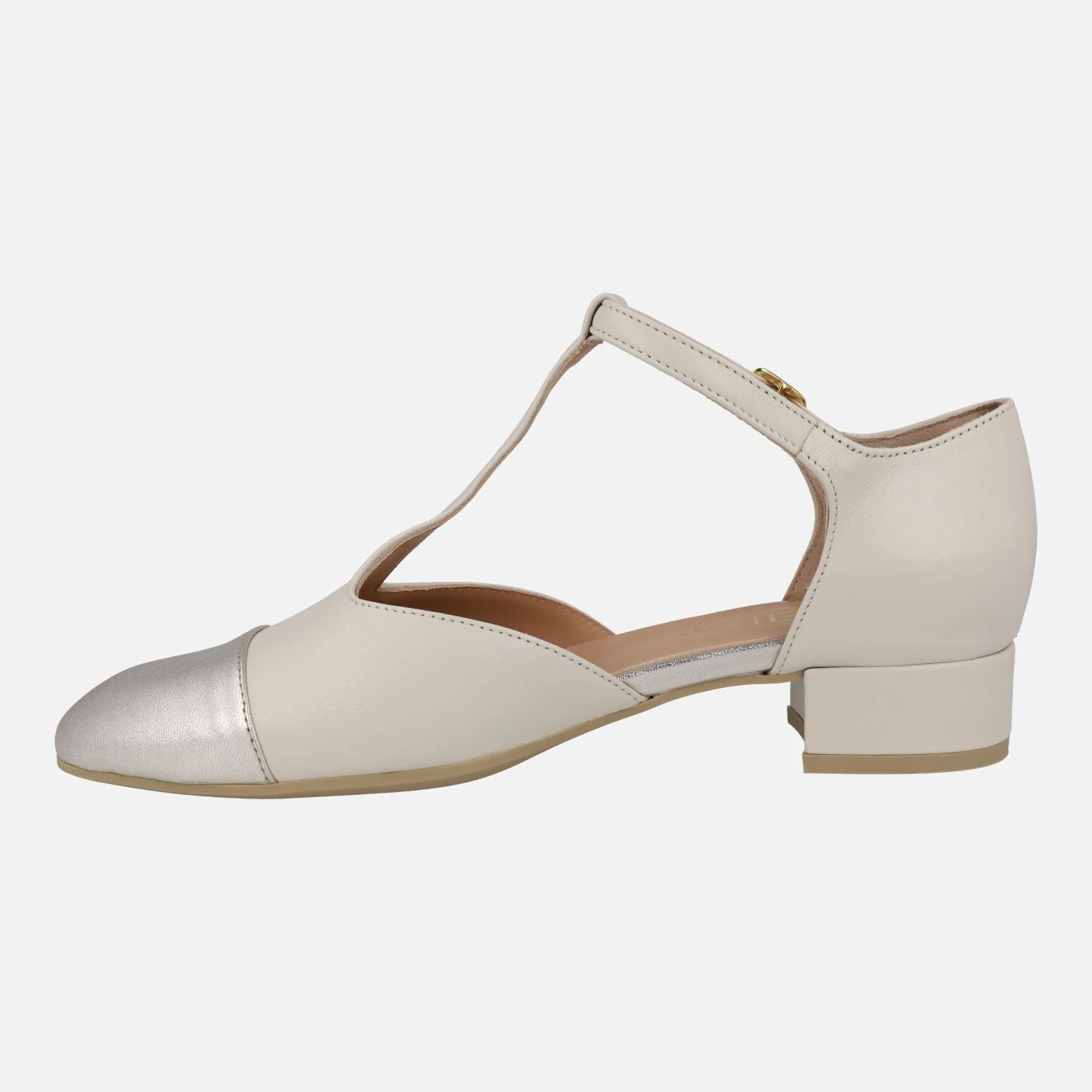 Zapatos para mujer de la marca española Vexed, modelo Deni. Estan fabricados en piel, con la puntera en metalizado. Llevan aberturas laterales y tira en el empeine que cierra con hebilla. El forro y las plantillas son de piel. El piso es de goma, con lo que se consigue que sea mas flexible. El tacón tiene una altura de 3 cms. y va forrado en piel.