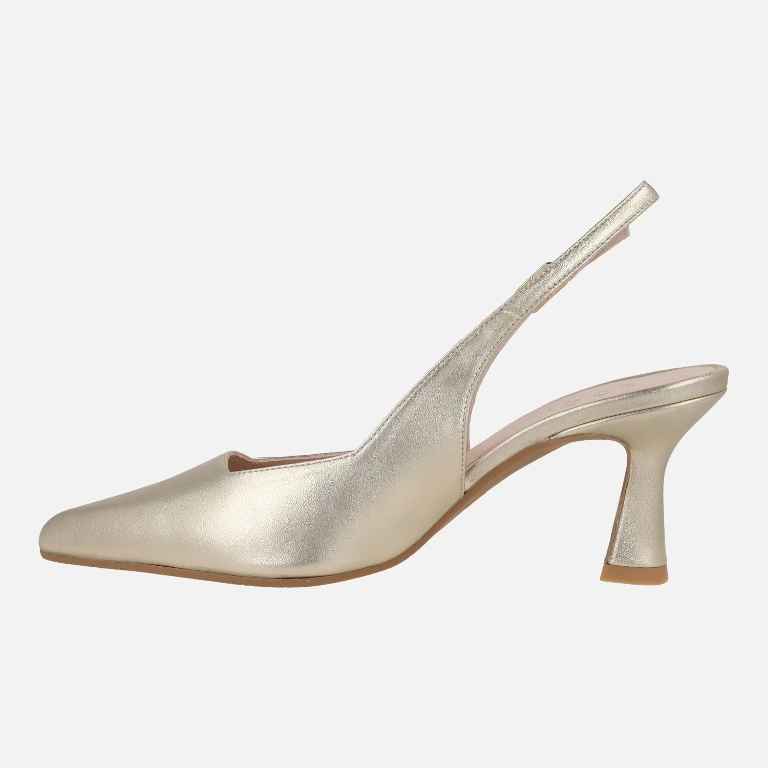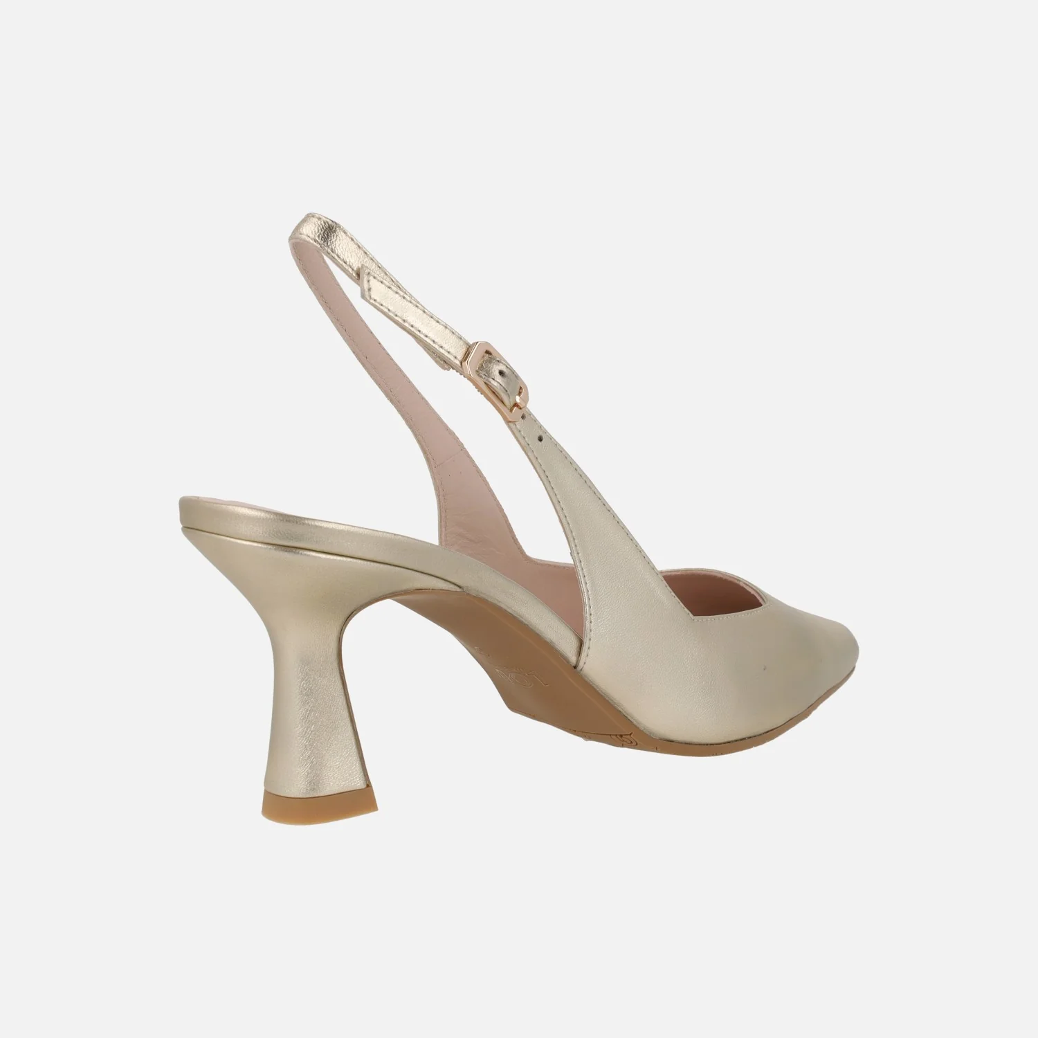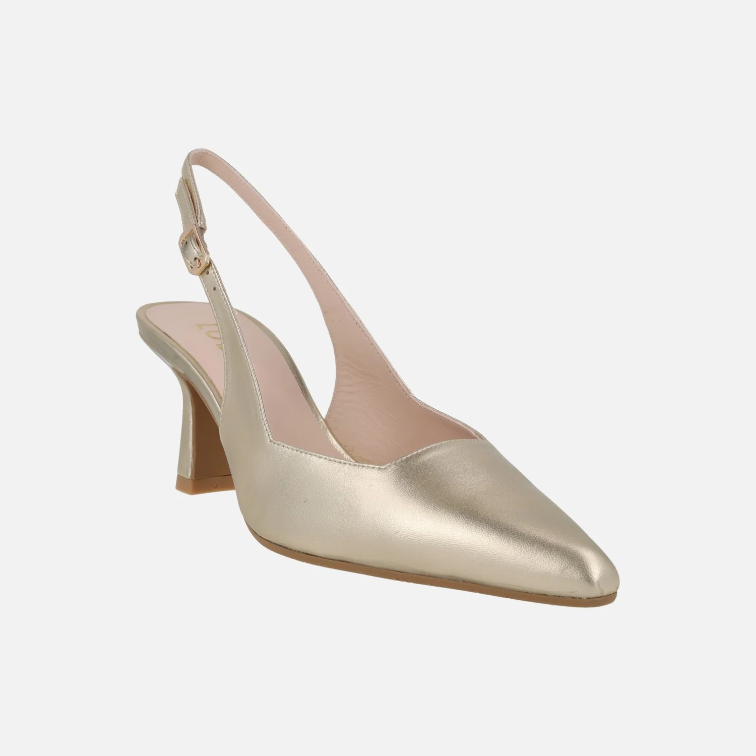 Elegantes zapatos corte salón para mujer de la marca Lodi, modelo Gelines-X. Zapatos destalonados, elaborados en ante oceano (azul marino) o en piel metalizada oro (cosmos cava) con tira al talón y cierre de hebilla. Puntera afilada, escote cuadrado. Interiores de piel, planta new gel. Tacones de aproximadamente 8 cms de altura, forrados. Made in Spain.