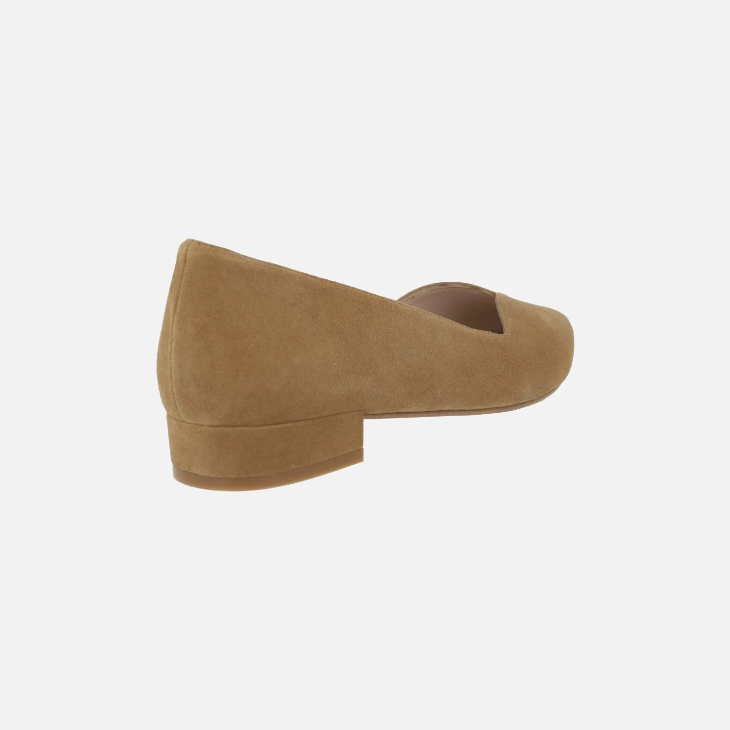 Zapatos bajos de piel para mujer de la marca Escalzia, modelo Breda. Zapatos estilo bailarinas, con puntera ligeramente afilada y escote en pico. Elaborados en ante camel, con forro y planta de piel. Tacones bajos, forrados, de 2,5 cms de altura.