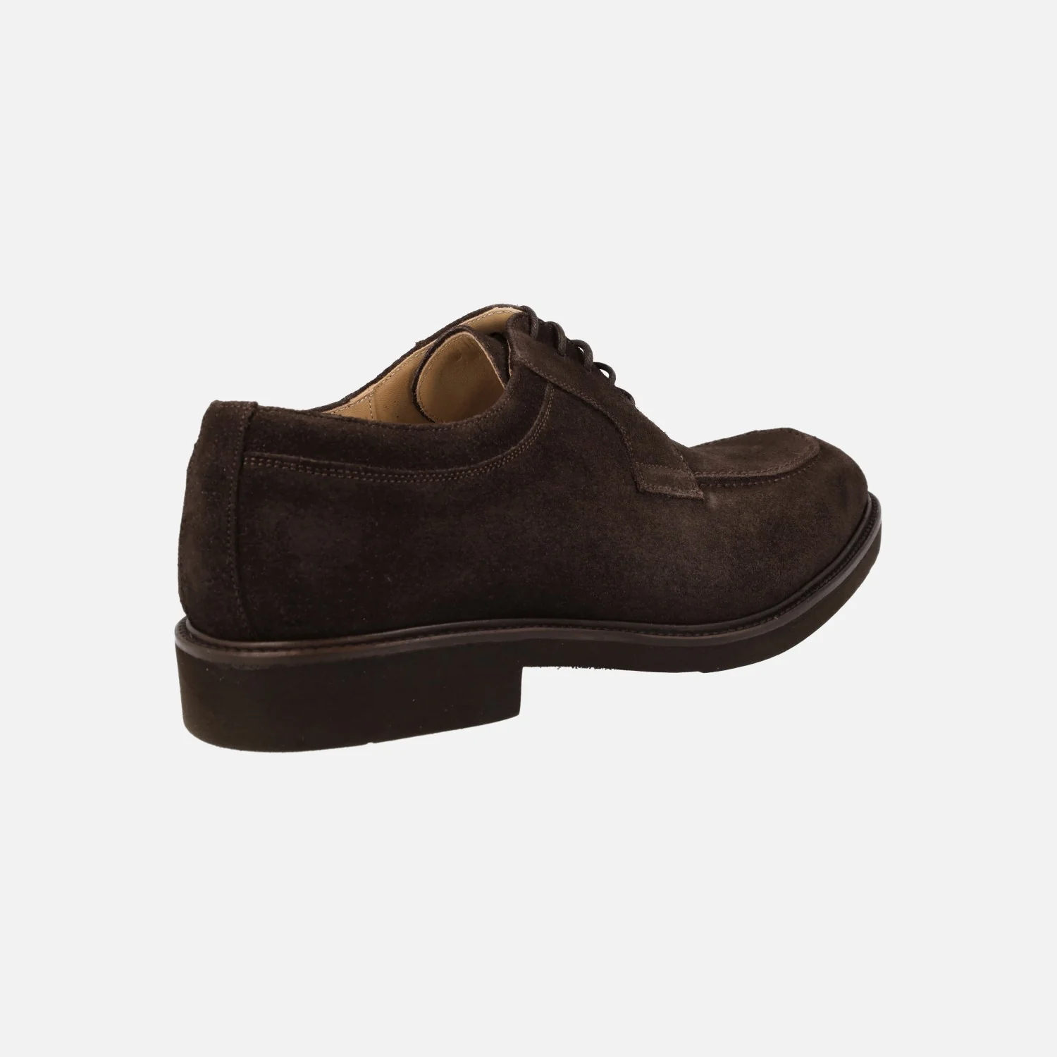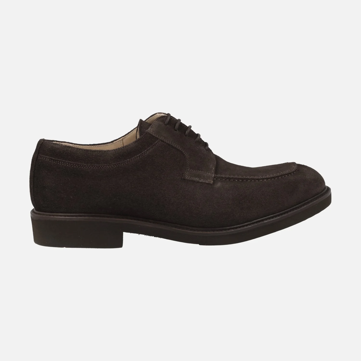 Zapatos de cordones para hombre de la marca Castellanos de Madrid, modelo Russell, disponibles en ante cafe (marrón chocolate) o en piel negra. Zapatos blucher, elegantes y muy cómodos, con forro y planta de piel. Piso de goma. Made in Spain.