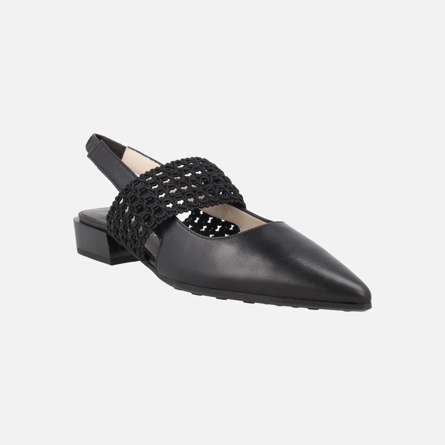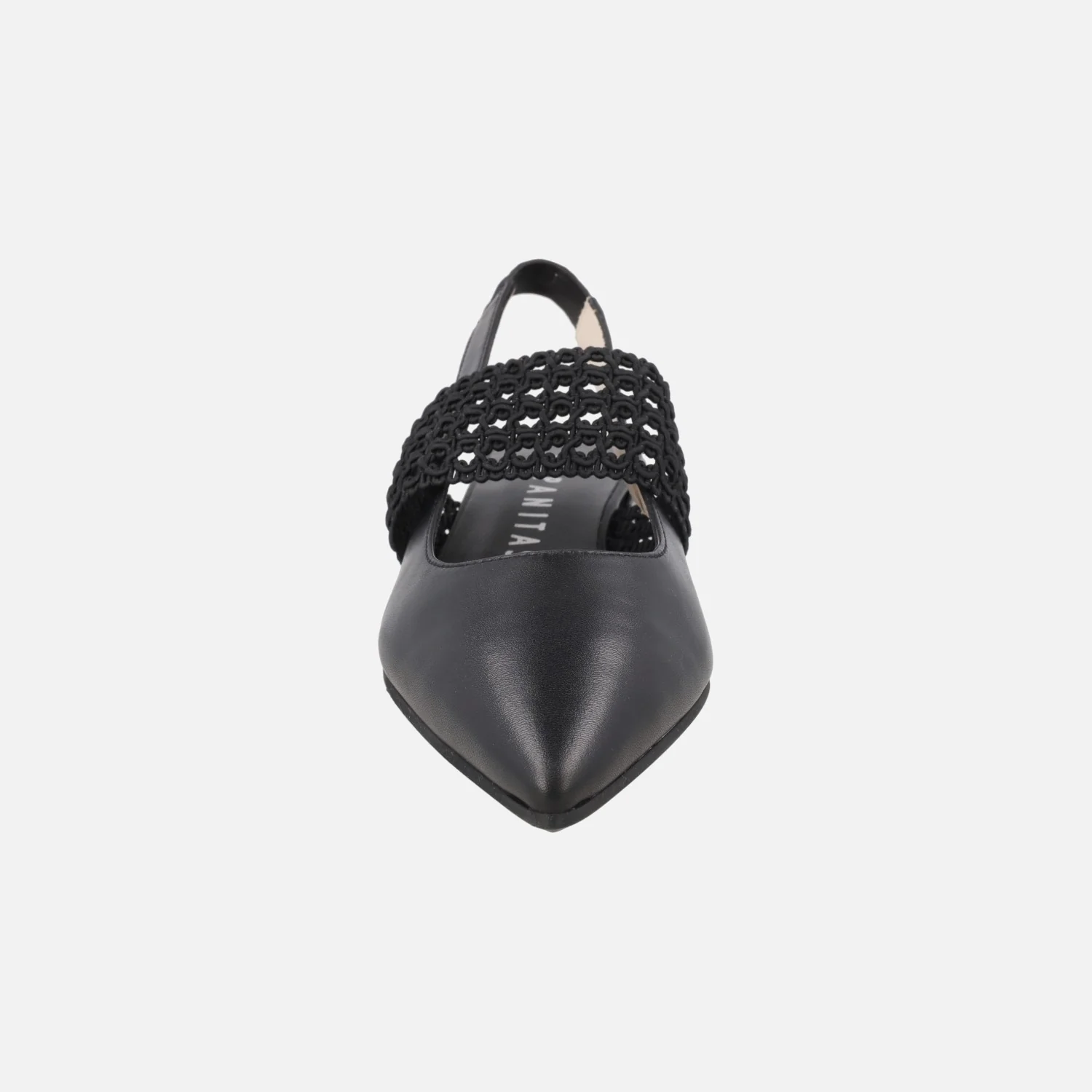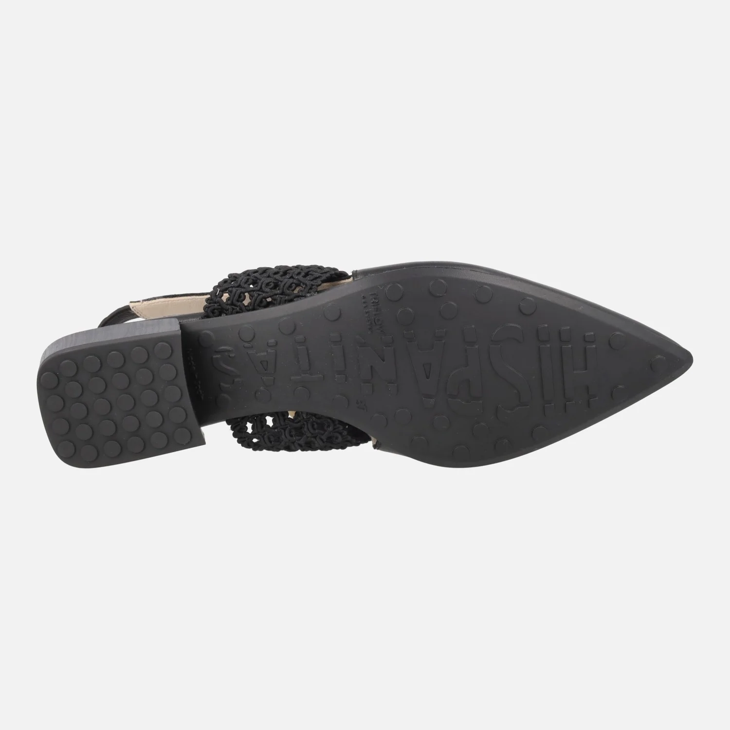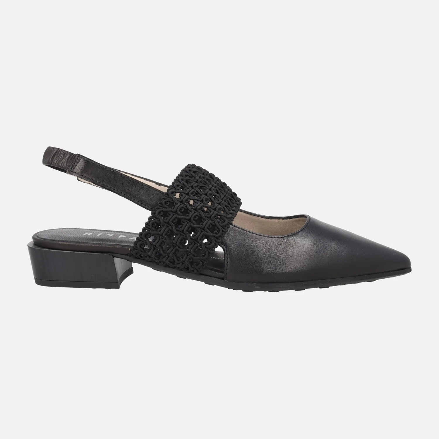 Preciosos zapatos de piel destalonados de la marca Hispanitas modelo HV264778, disponibles en negro y en almond (camel). Bailarinas de puntera afilada, con banda elástica estilo crochet. Tira al talón con elástico para mejor calce y sujeción. Interiores forrados de piel. Suela sintética. Tacones bajos de casi 3 cm de altura. Sistema TRIFLOW de triple almohadillado para un gran confort a la hora de caminar.