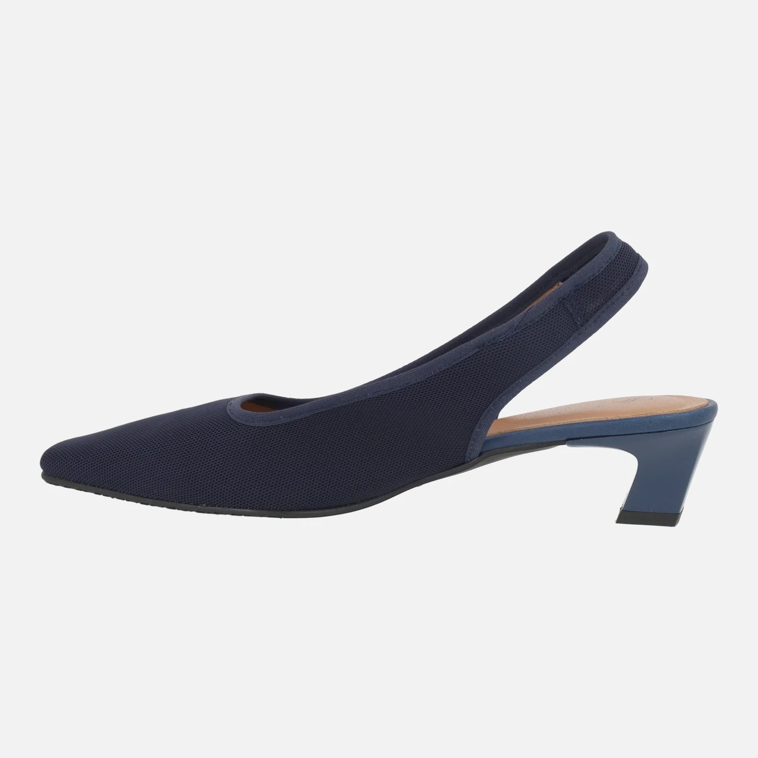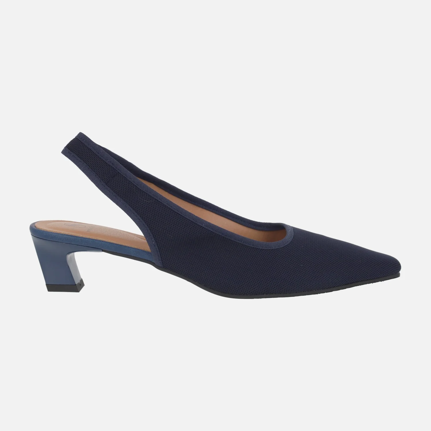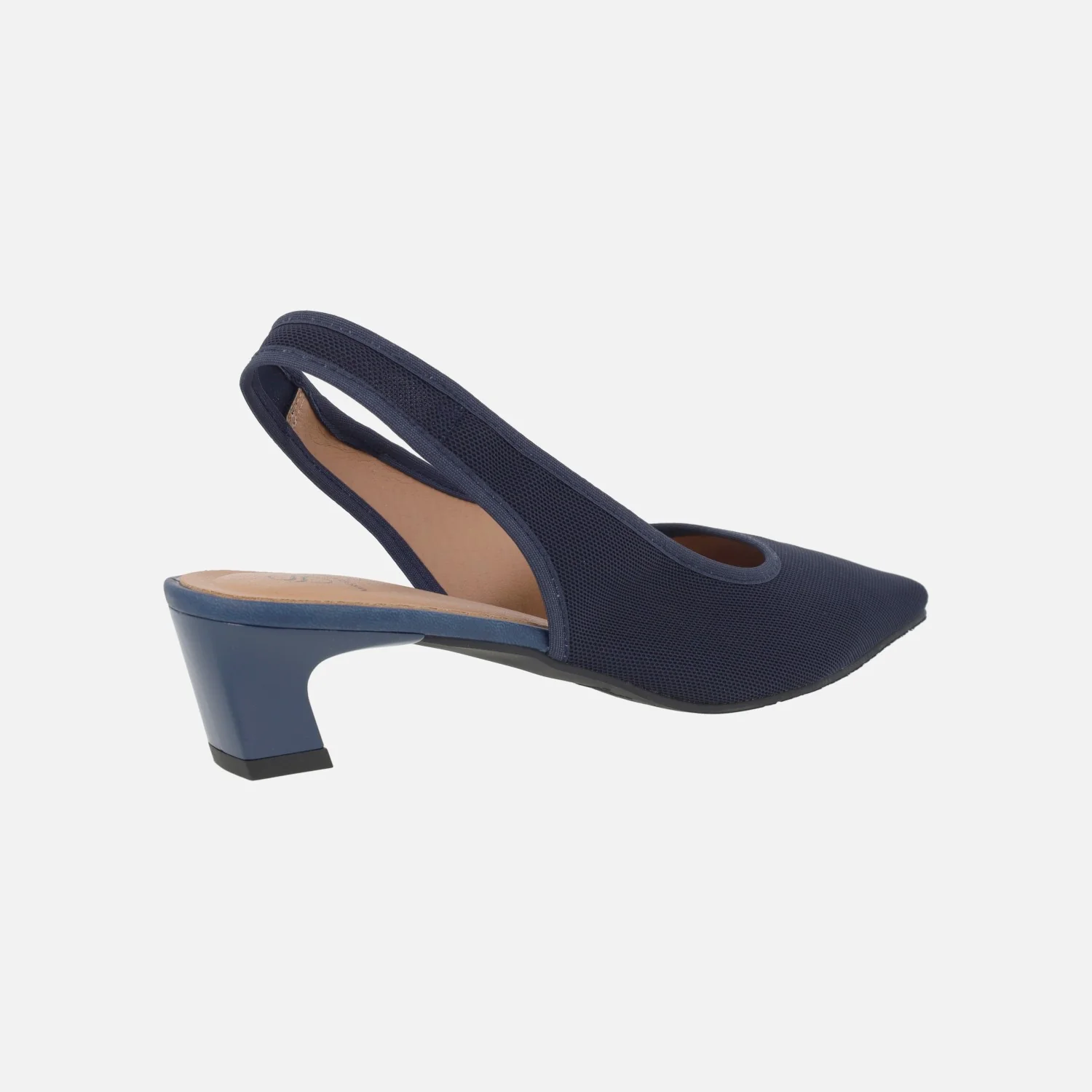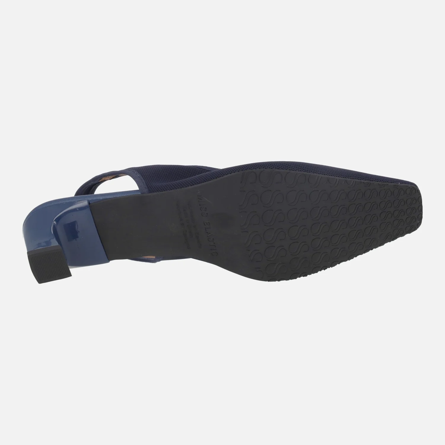 Zapatos de salón destalonados de la marca Miss elastic modelo 078027 Marino. Salones elaborados en tejido azul marino, con escote recto. Tira al talón. Interior textil. Tacones bajos, de 4 cm de altura.