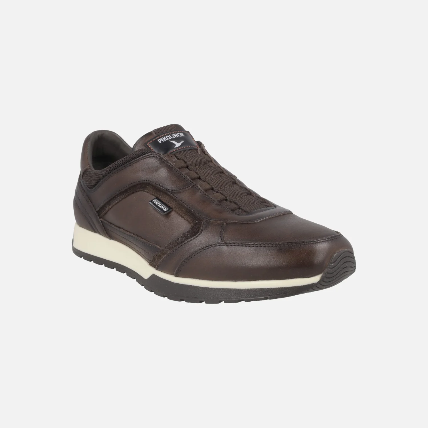 Elegantes zapatos deportivos para hombre de la marca Pikolinos modelo Cambil M5N-6247C1 Olmo. Deportivos de piel marrón, con cierre de elásticos. Interior mixto en piel y tejido, con plantillas extraíbles Memory foam. Piso de goma.