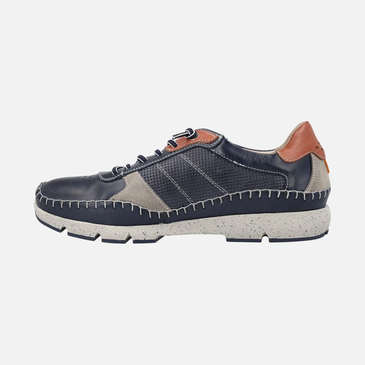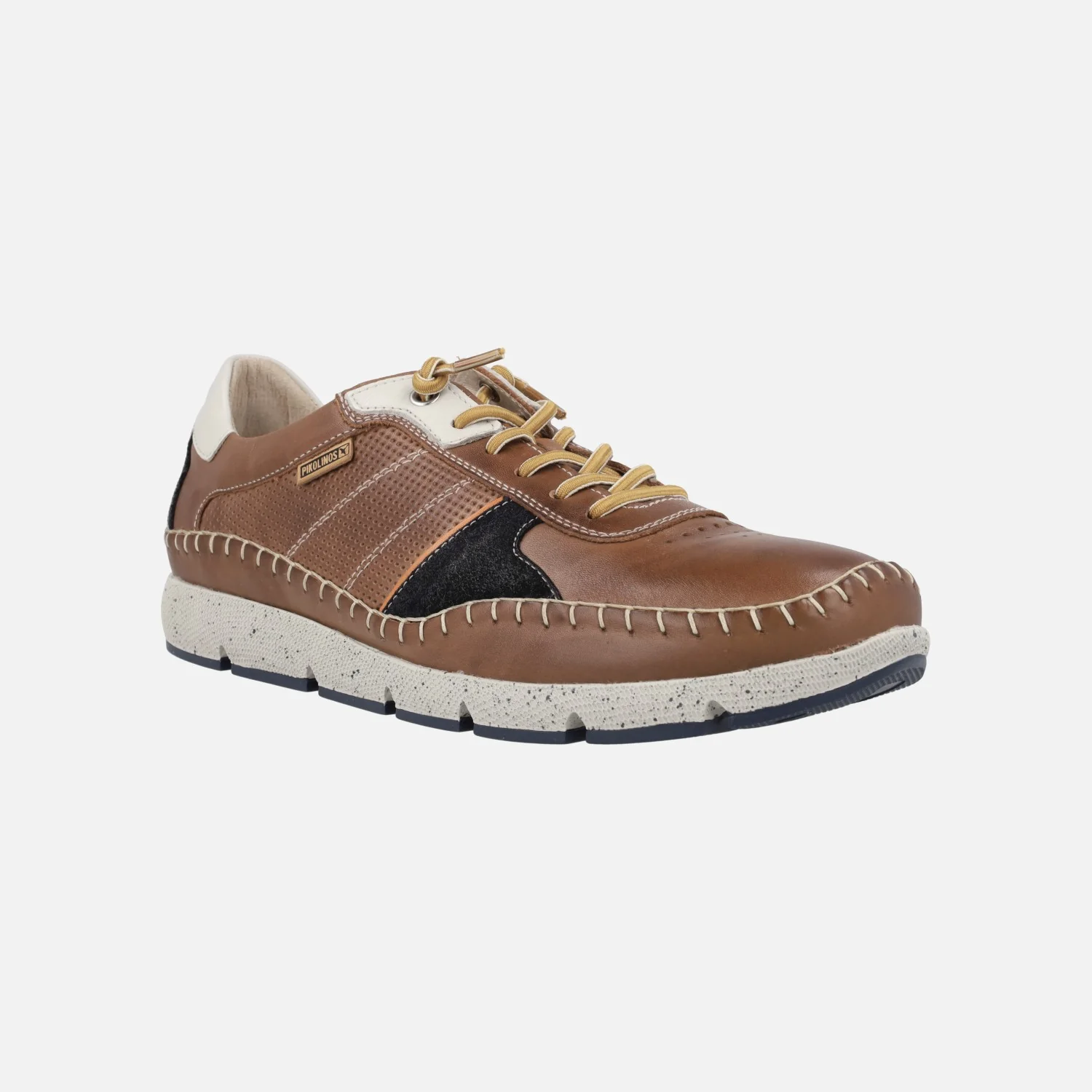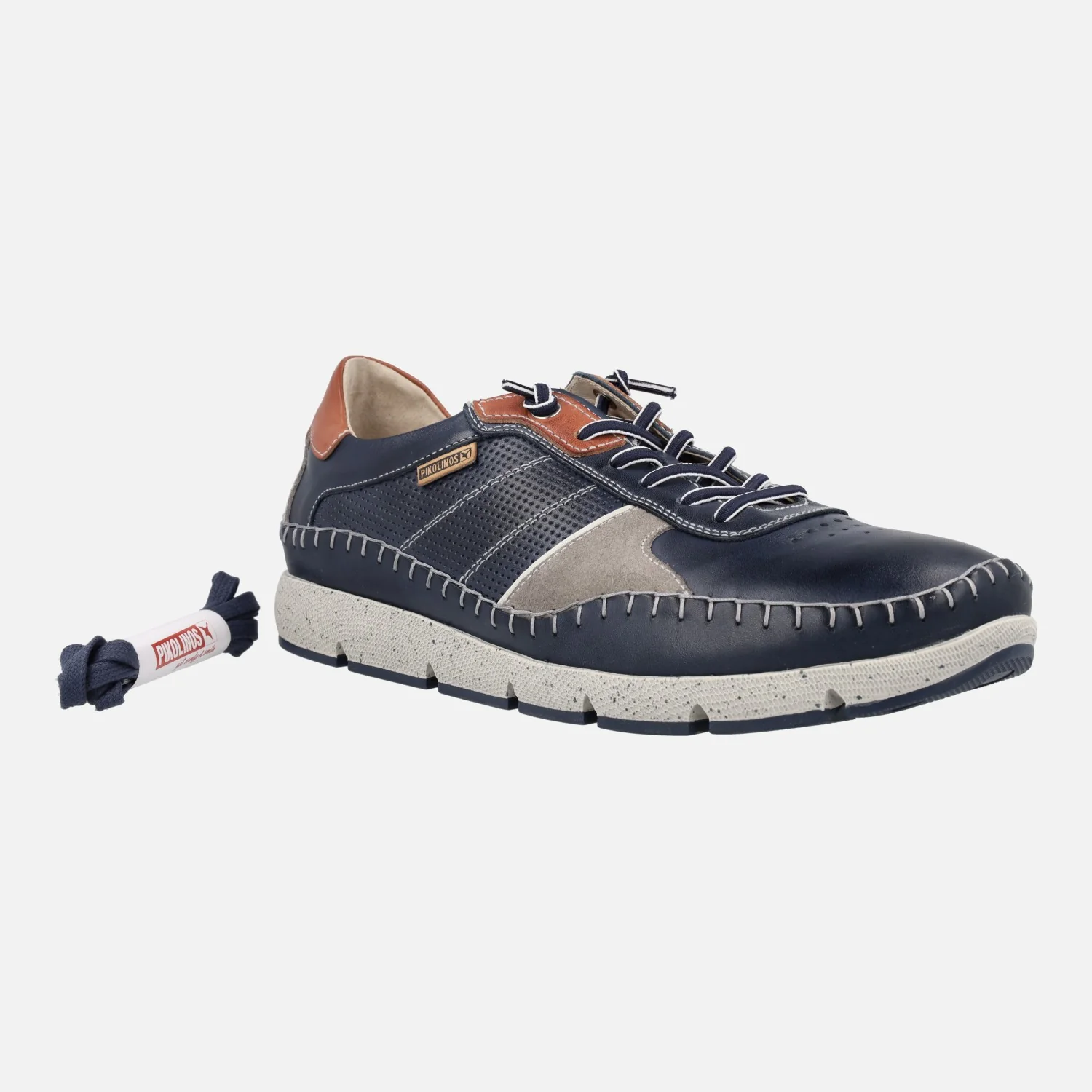 Deportivos de piel para hombre de la marca Pikolinos modelo FUENCARRAL M4U-6113C1 disponibles en cuero, azul o espuma (blanco hielo). Deportivos de piel con cordones elásticos para una mayor comodidad a la hora de ponerlos. Además trae un recambio de cordones normales incluído. Interiores en piel y tejido, con plantillas extraíbles. Planta Memory foam y arch support. Suela 100% sintética, extraligera.