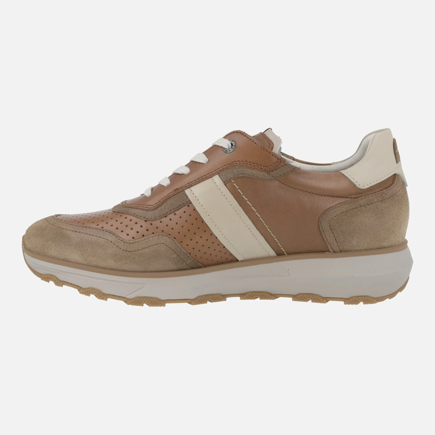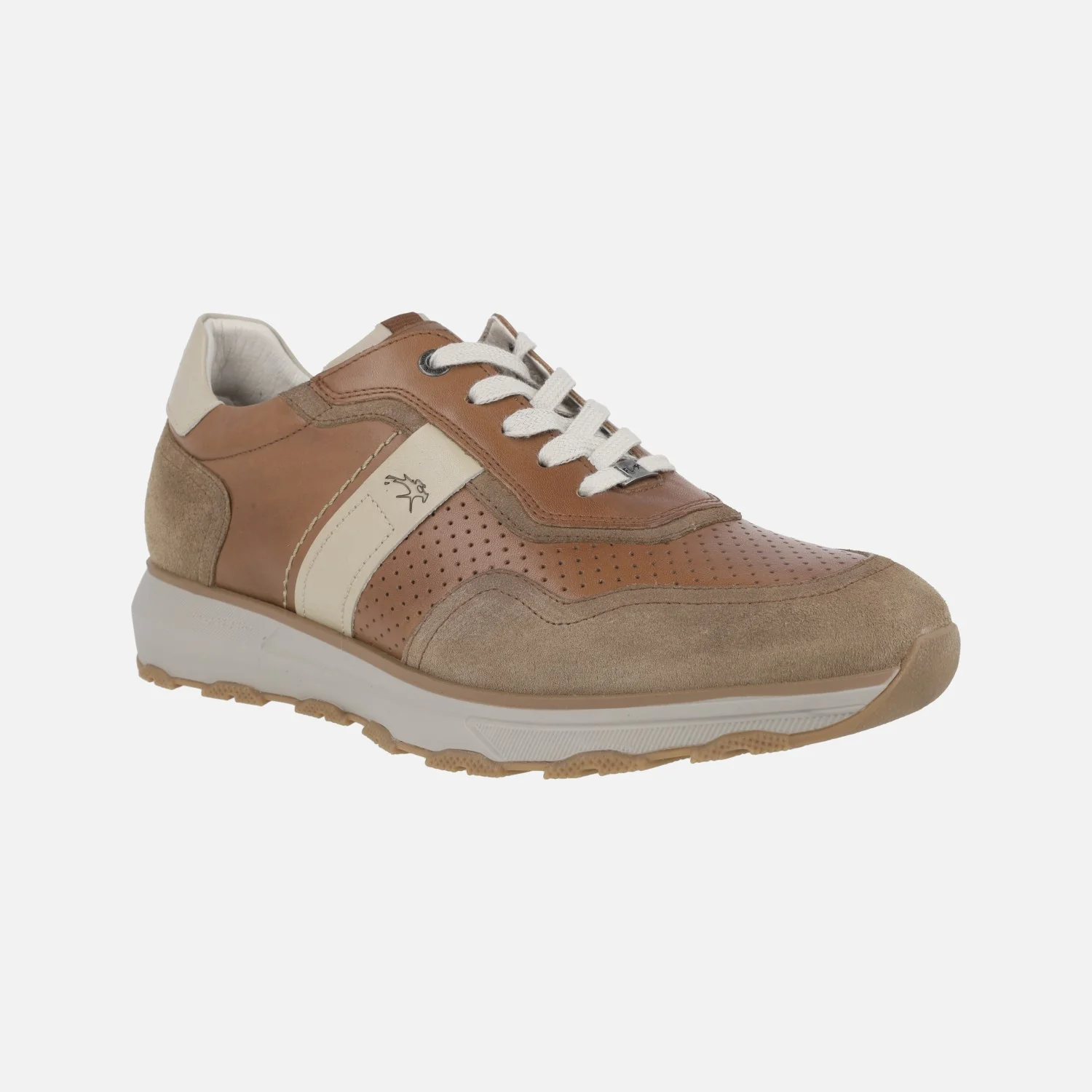 Deportivos de piel para hombre modelo Walter F2083 de la marca Fluchos. Deportivos confort, elaborados en piel color cuero con detalles en serraje. Piezas contrastadas en beige. Cierre de cordones textiles. Interior textil con plantillas extraíbles. Piso de goma.