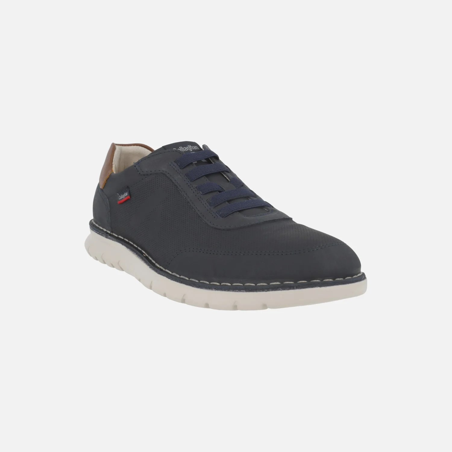 Zapatos deportivos para hombre de la marca Callaghan modelo 47116, disponibles en piel nobuck cuero o azul marino. Cordones elásticos. Interior textil con plantillas extraíbles. Piso sintético Extralight.