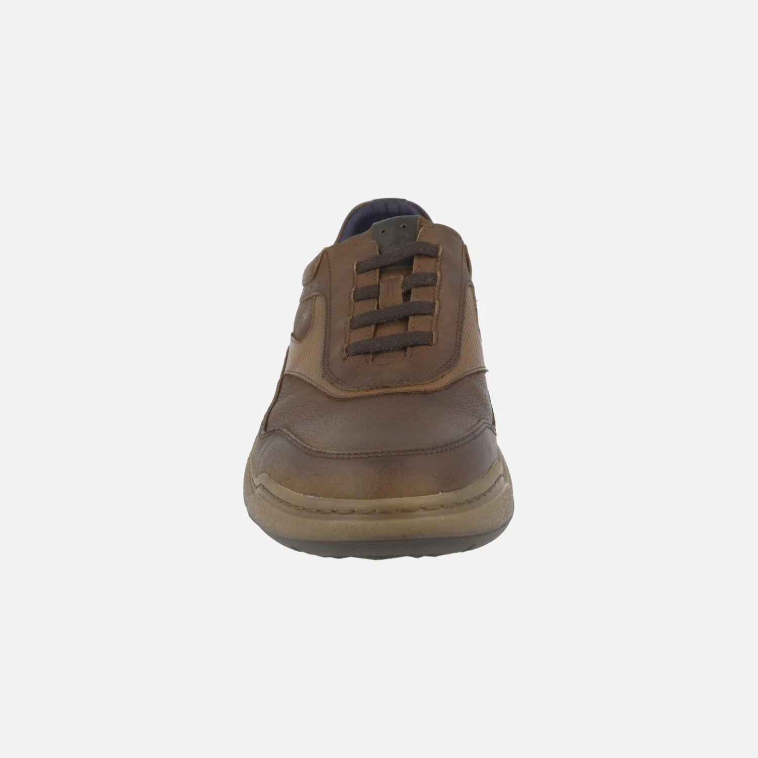 Zapatos deportivos para hombre modelo Rocky de la marca Fluchos F2040 Piedra. Deportivos elaborados en piel marrón, con cierre de cordones elásticos. Interior textil con plantillas extraíbles. Piso de goma.