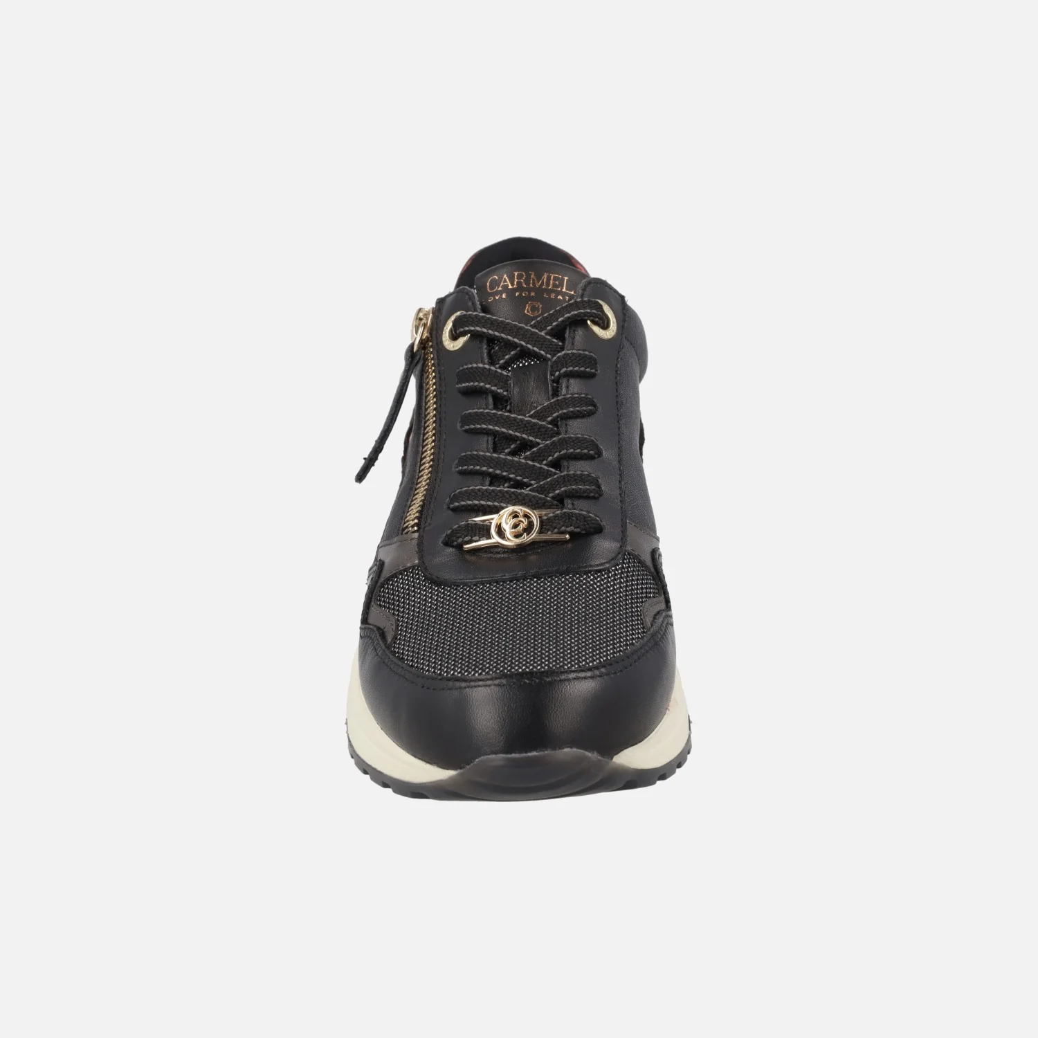 Zapatos deportivos para mujer de la marca Carmela shoes, modelo 162517, disponibles en combinado negro y en combinado kaki. Deportivas elaboradas en piel combinada con otros materiales, tiene cierre de cordones y además cremallera en el lado exterior. Interior textil con plantillas extraíbles de piel. Piso sintético, de 4 cm de altura trasera (2 cm parte delantera).