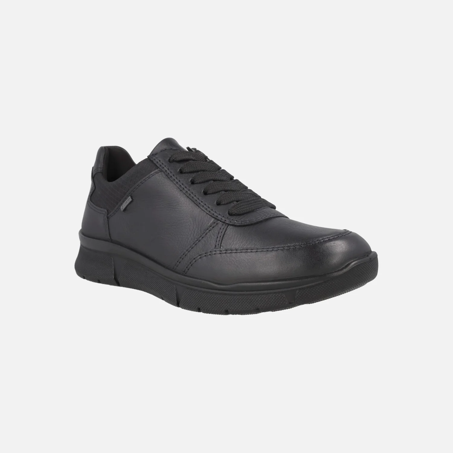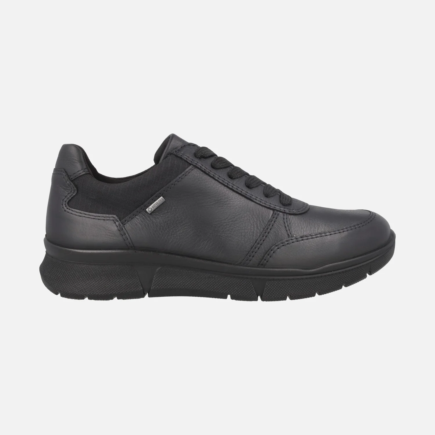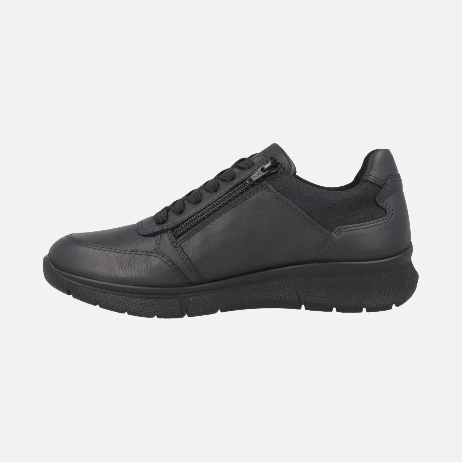 Zapatos deportivos para hombre de la marca Ara, modelo 1125602 disponibles en color negro (Schwarz) y en combinado azul con marrón (Blau steel). Deportivos elaborados en piel con cuello en tejido. Cierre de cordones en la parte delantera y cremallera en el lateral, para calzarlos con mayor comodidad. Interior textil, plantillas extraíbles. Membrana interior de Gore tex, impermeable. Piso sintético.