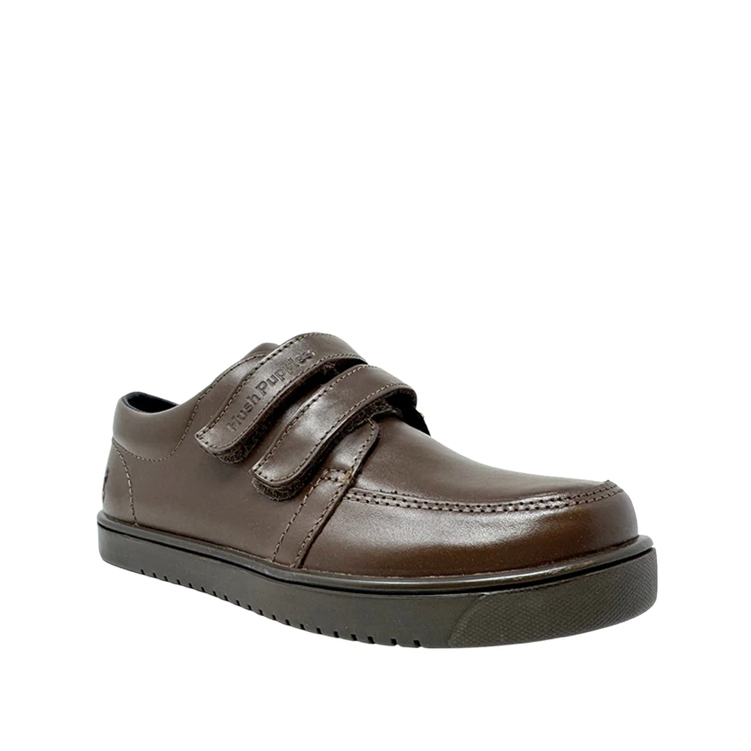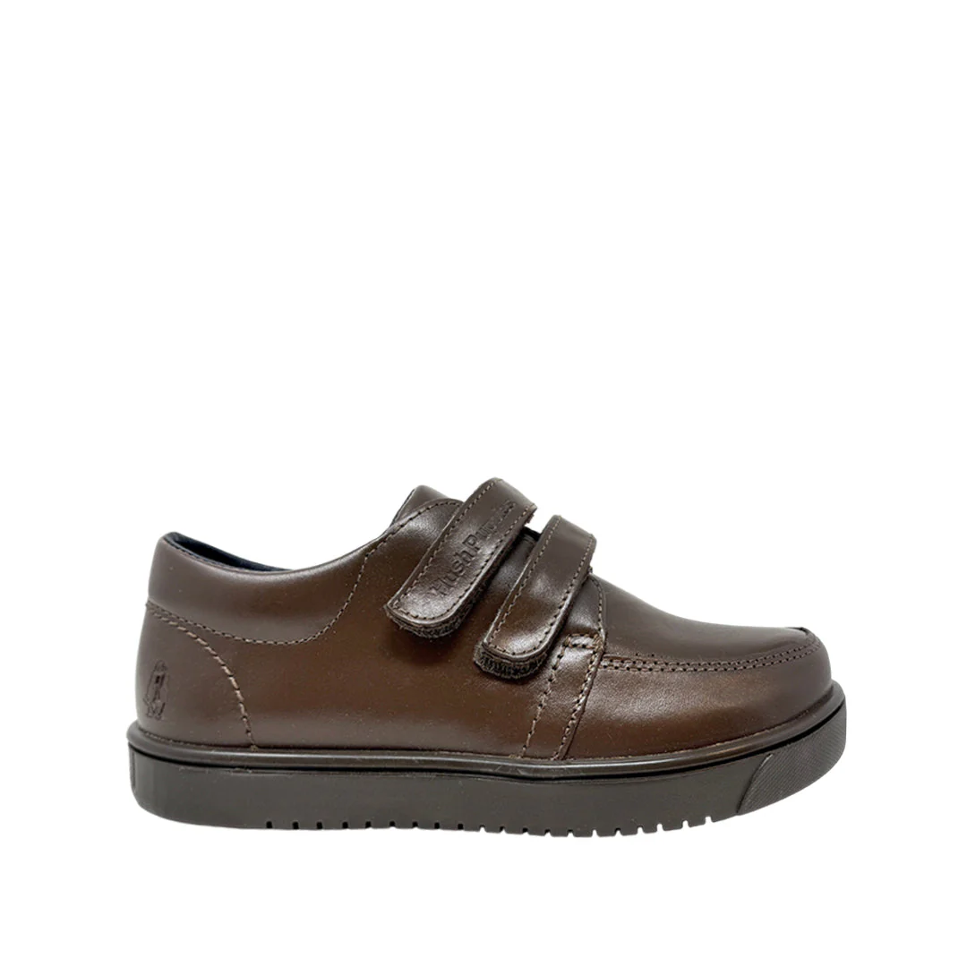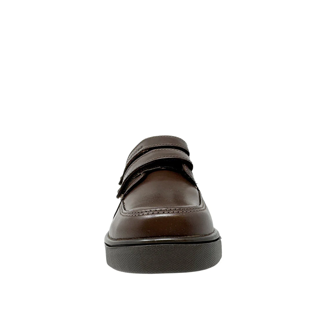 Zapatos escolares Edo para niño color café con tecnología Bounce™ y plantilla extraíble de alta memoria que absorbe impactos y devuelve energía para comodidad prolongada y mayor resistencia.
