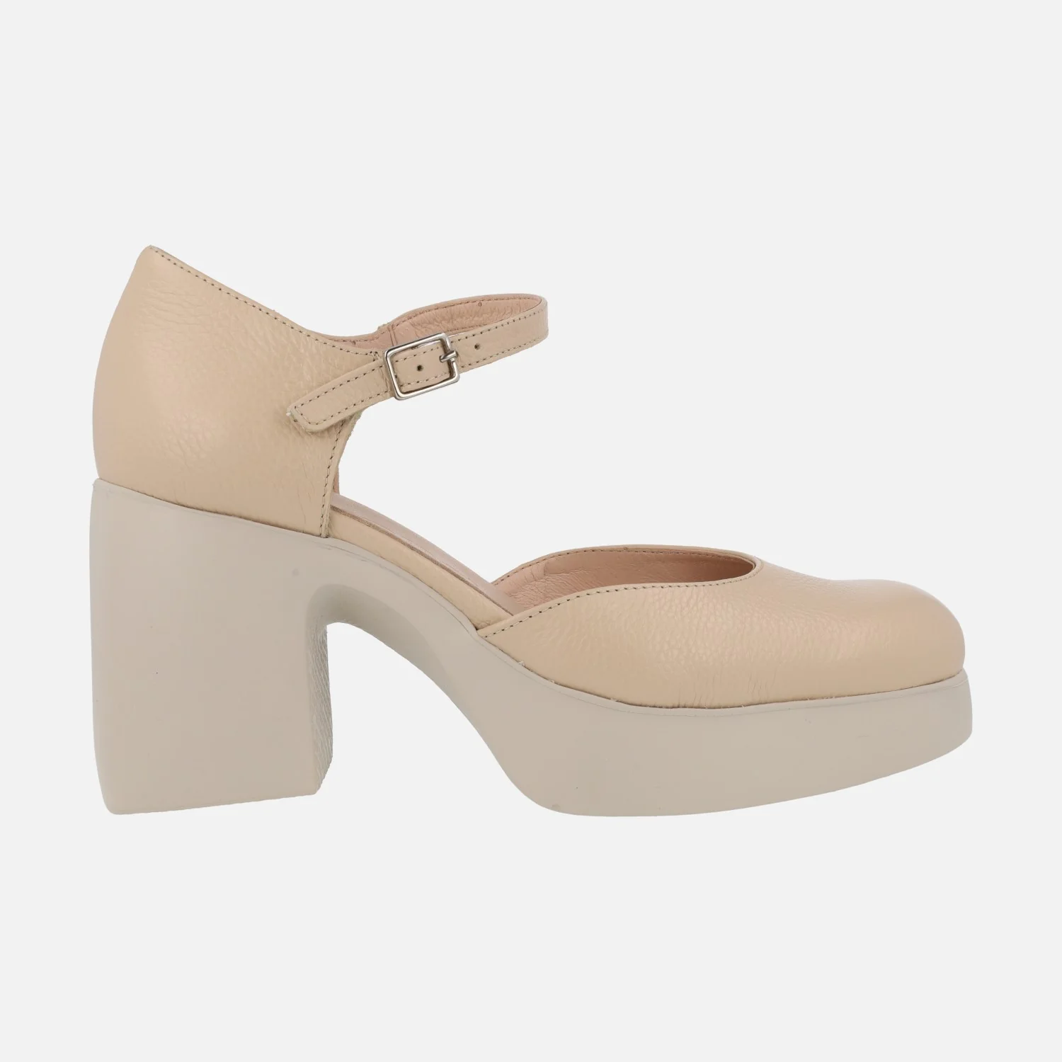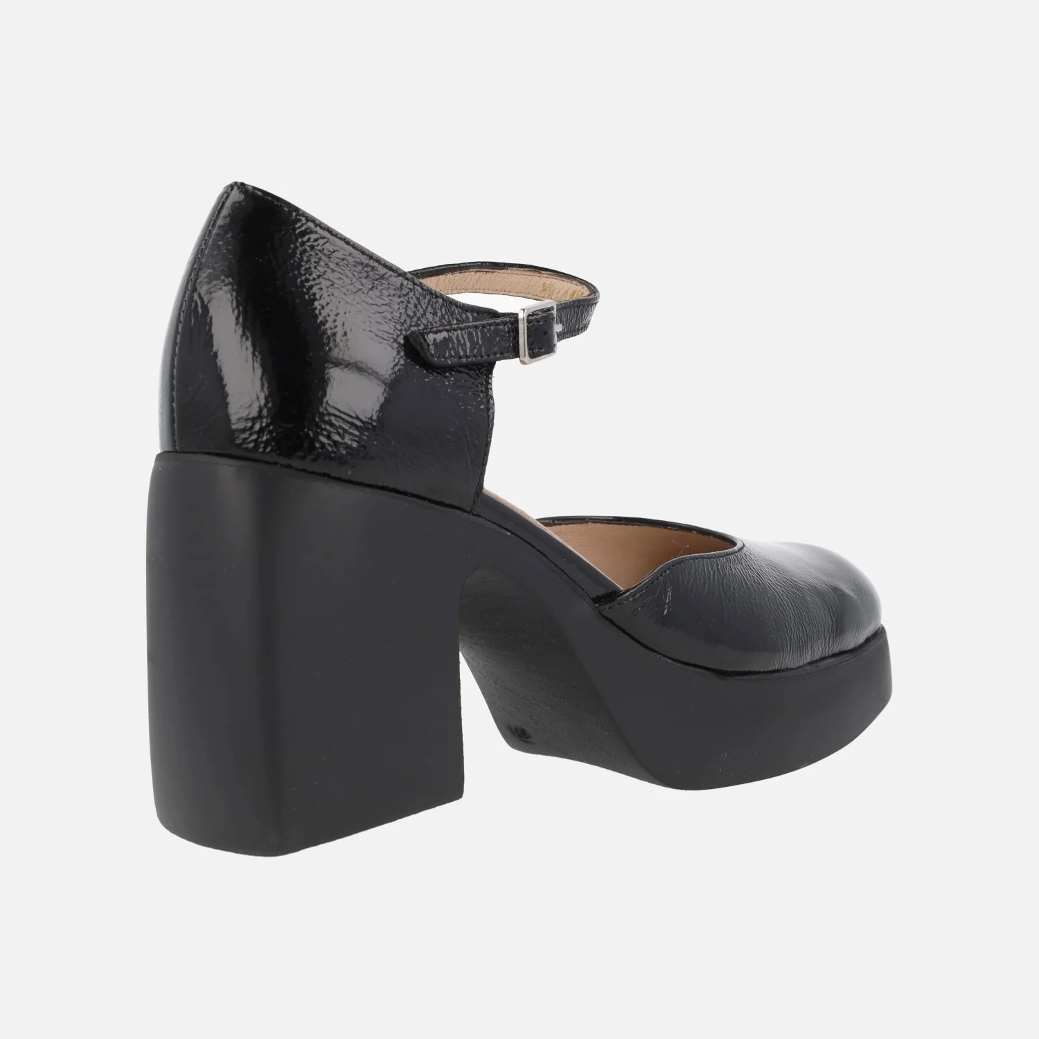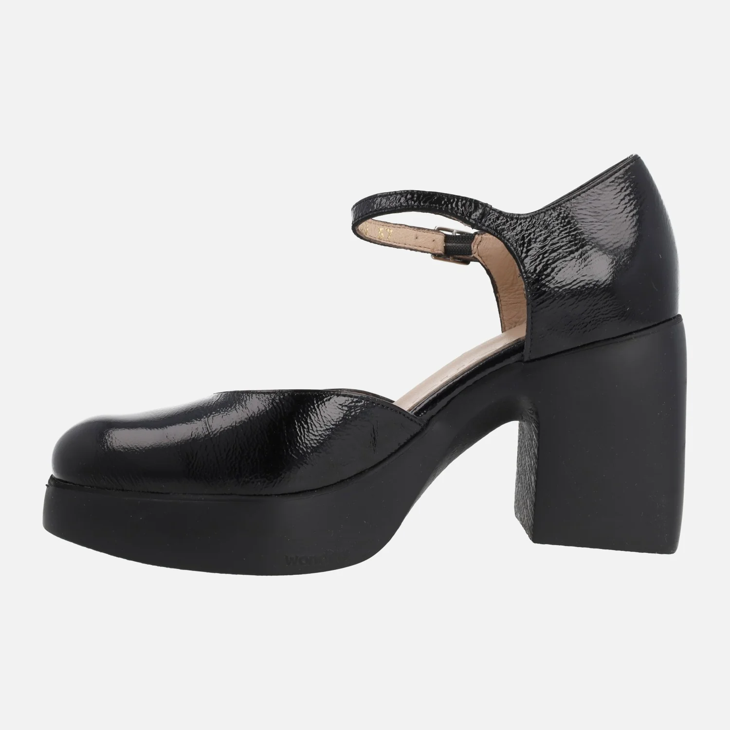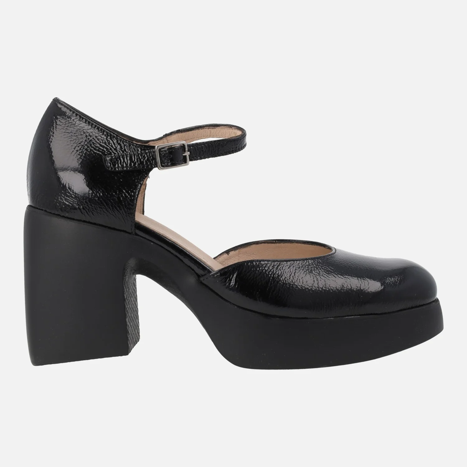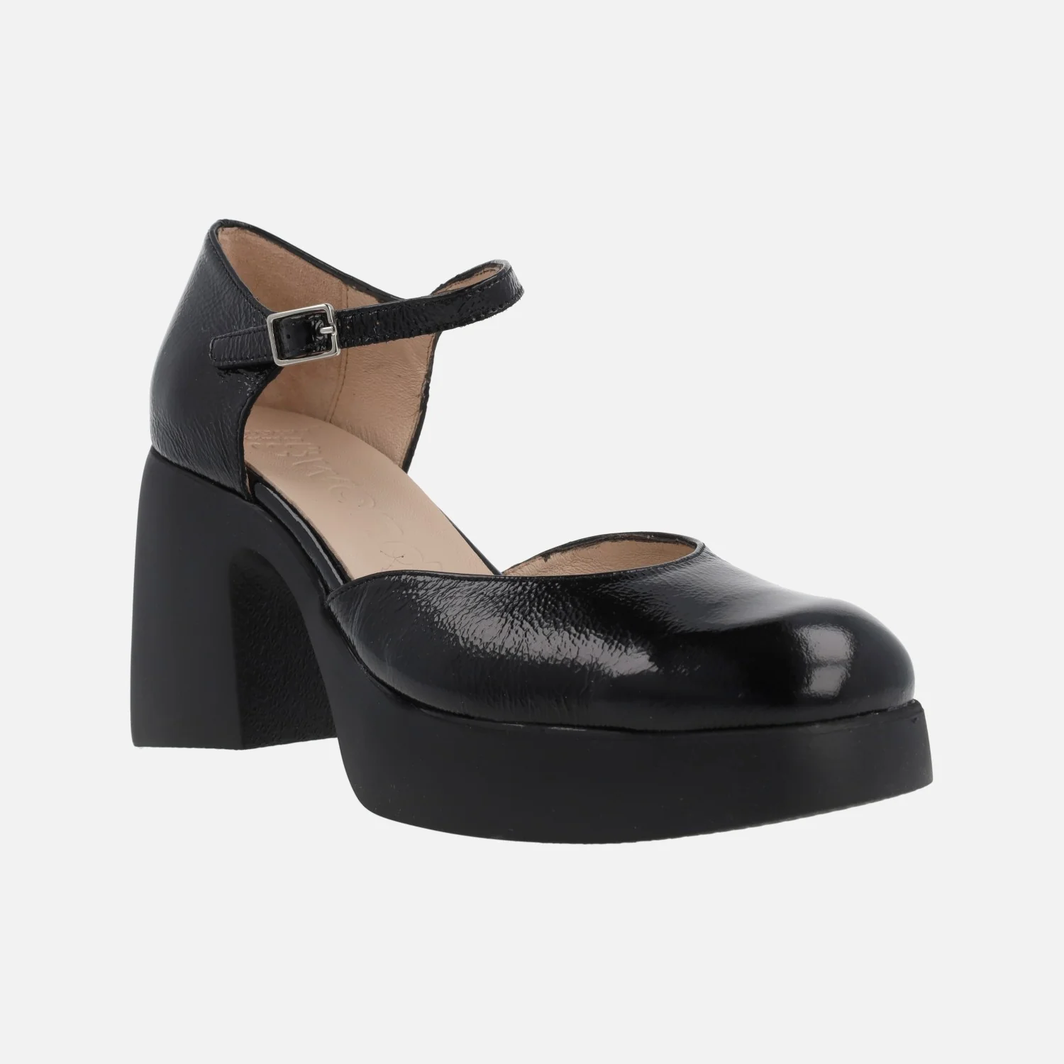 Elegantes zapatos estilo merceditas de la marca Wonders modelo H-4930 Lala disponibles en Lack Negro o Wild natural. Zapatos de tacón y plataforma, elaborados en charol negro o piel grabada beige con pulsera al tobillo y cierre de hebilla. Interiores de piel. Planta Memory Gel. Tacón y plataforma de goma EVA muy ligeros, con tecnología WondersFLY. Punta redondeada. Altura de tacón 8 cms (plataforma de 2,5 cms). Made in Spain.