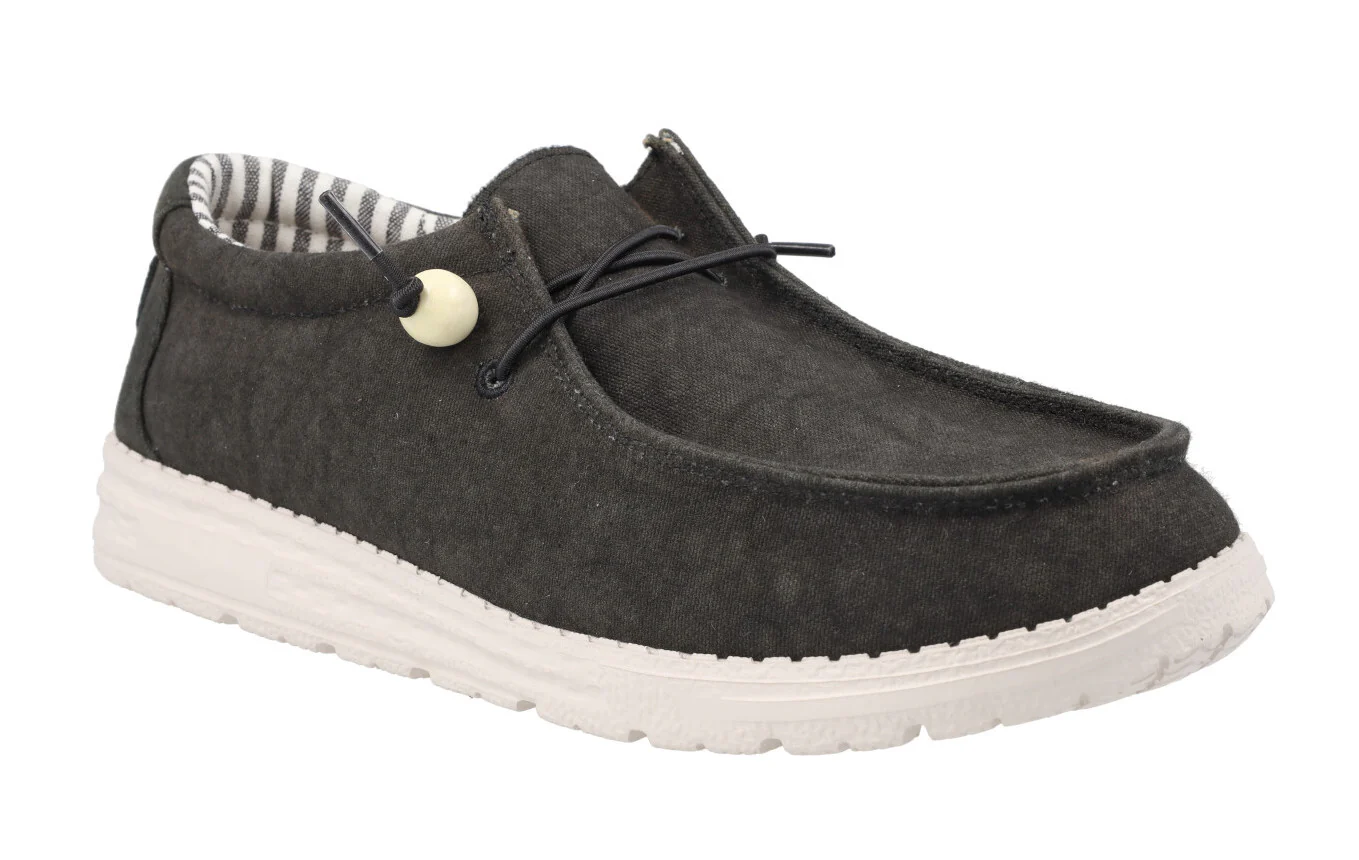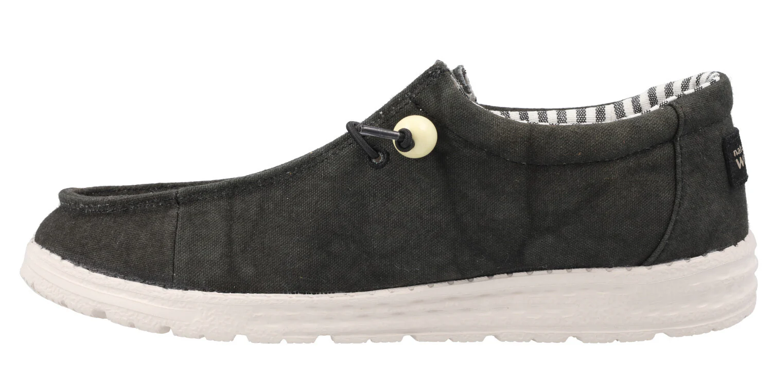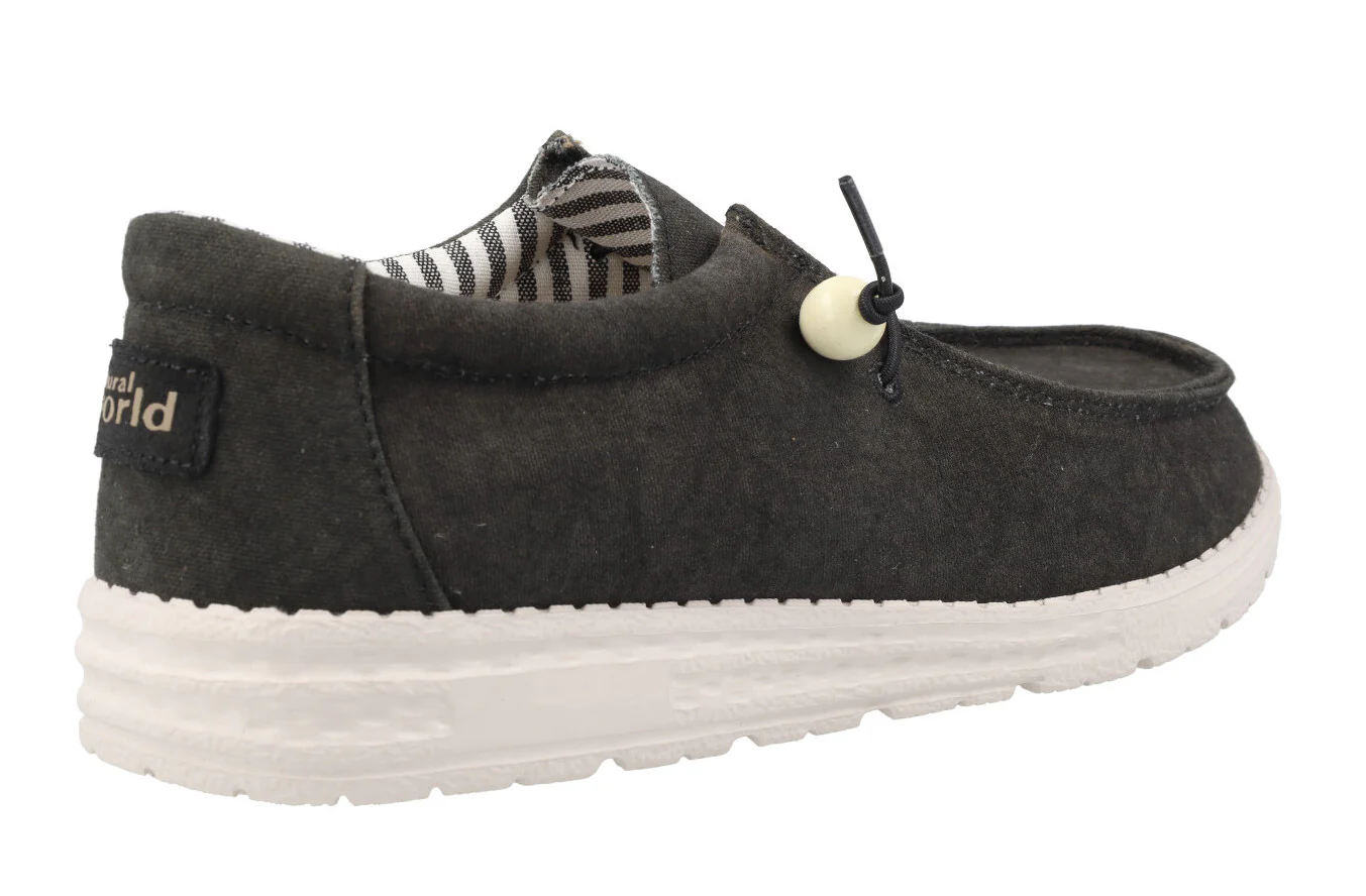 Zapatos para hombre Natural World Gary 8250, zapatos elaborados en tejido algodón orgánico. Cordones elásticos para mayor comodidad. Interior textil con plantillas extraíbles. Piso ligero de goma. Disponibles en negro, rojo o gris (gris verdoso).
