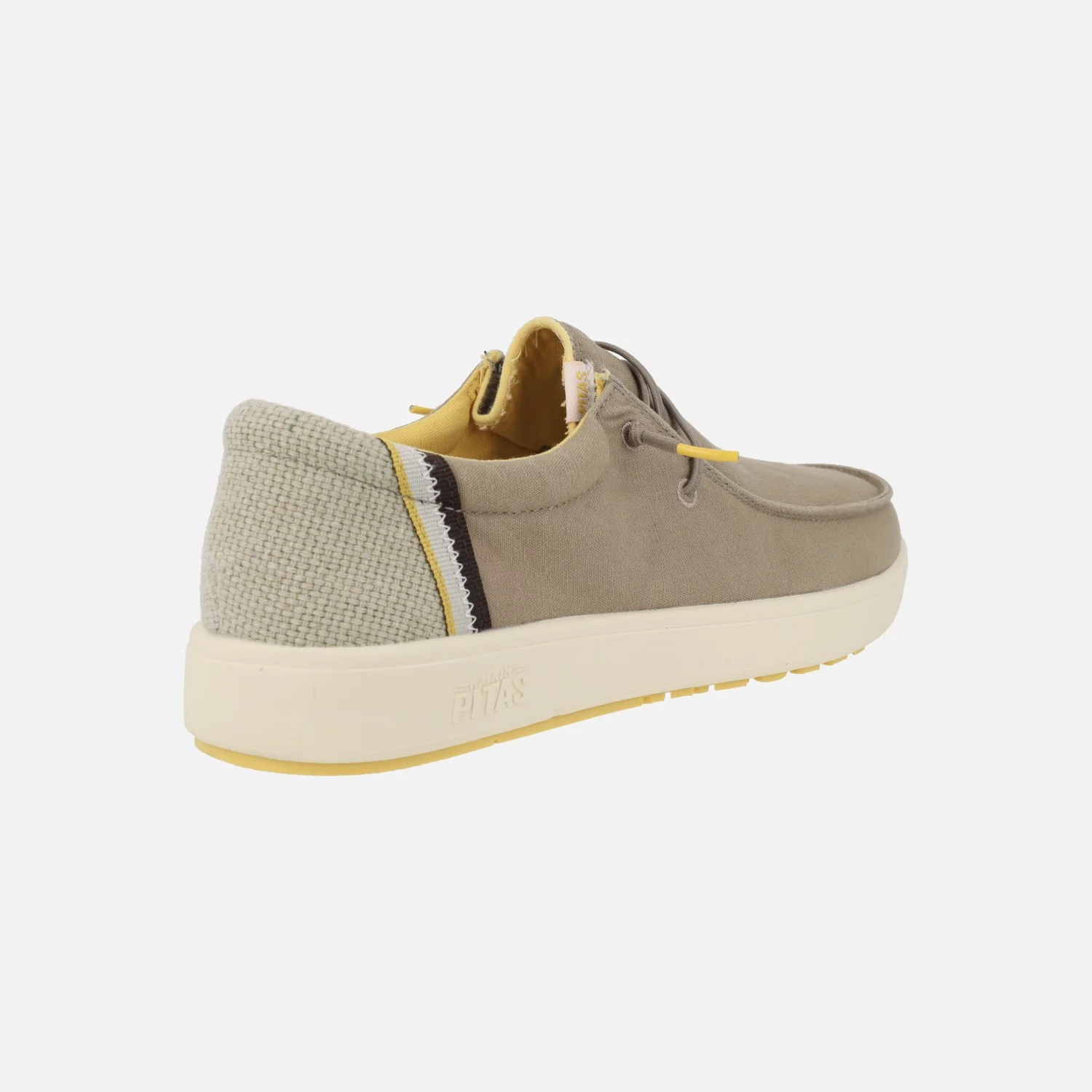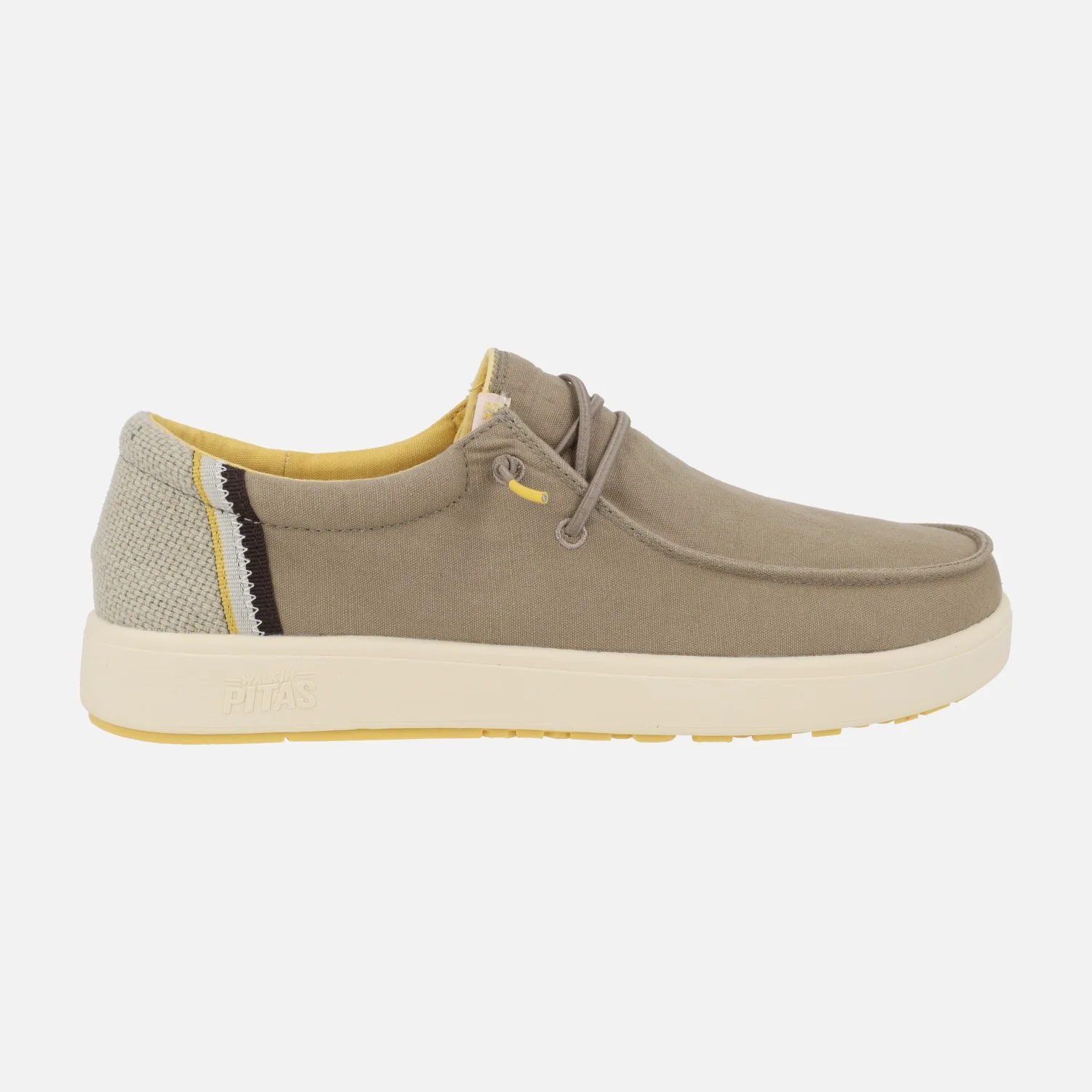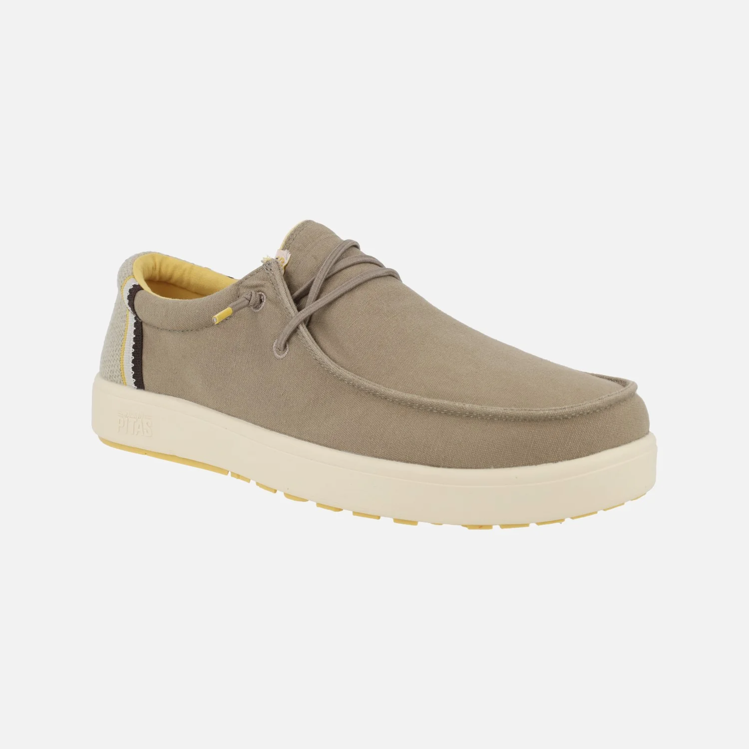 Nuevas zapatillas casual para hombre modelo Cana de la marca Walk in pitas. Zapatos casual estilo wallabi, elaborados en tejido algodón y lino, con cordones elásticos. Forro textil con plantillas extraíbles forradas de piel. Piso de EVA y goma, extralight, muy ligeros. Disponibles en camel y kaki.