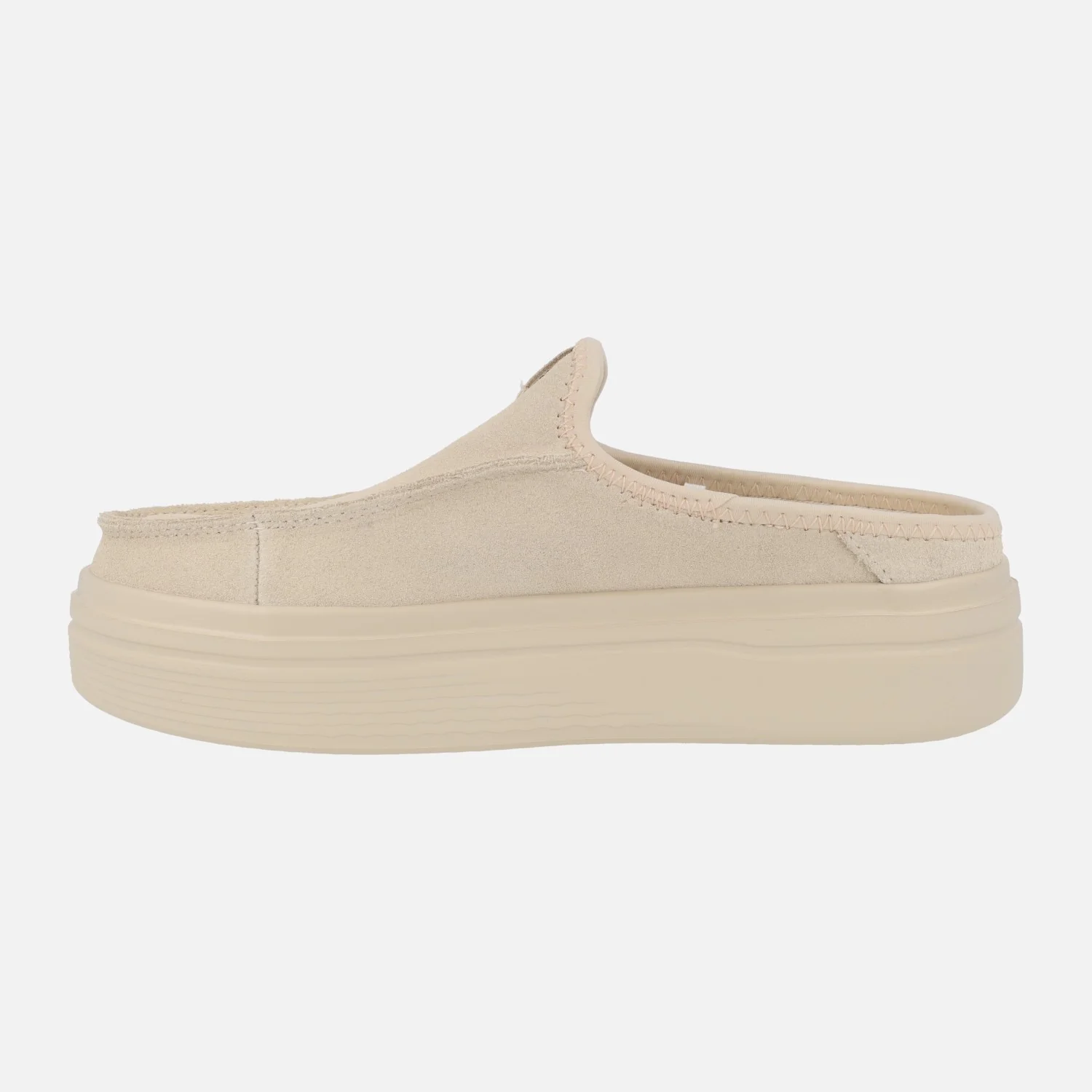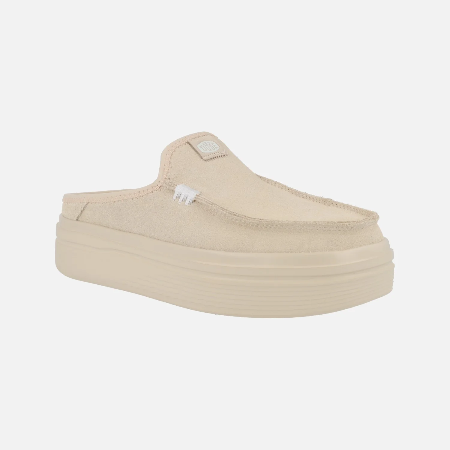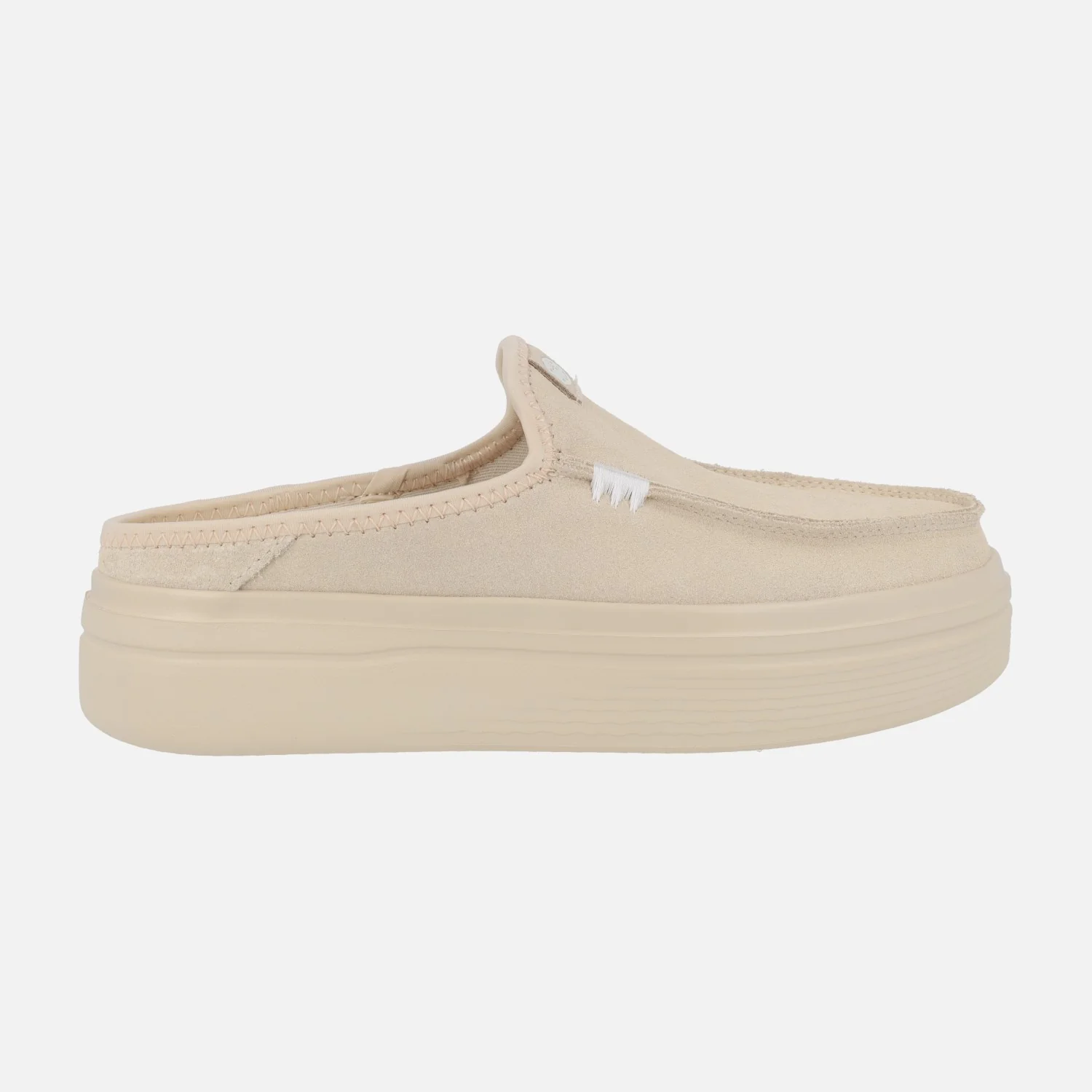 Zuecos con plataforma para mujer de la marca Hey dude, modelo Austin Lift classic blush HD41272-684. Zuecos elaborados en piel serraje color beige, con interior textil, plantillas extraíbles. Plataforma de goma EVA, muy ligera y resistente. Altura de plataforma aproximadamente 4 cms.
