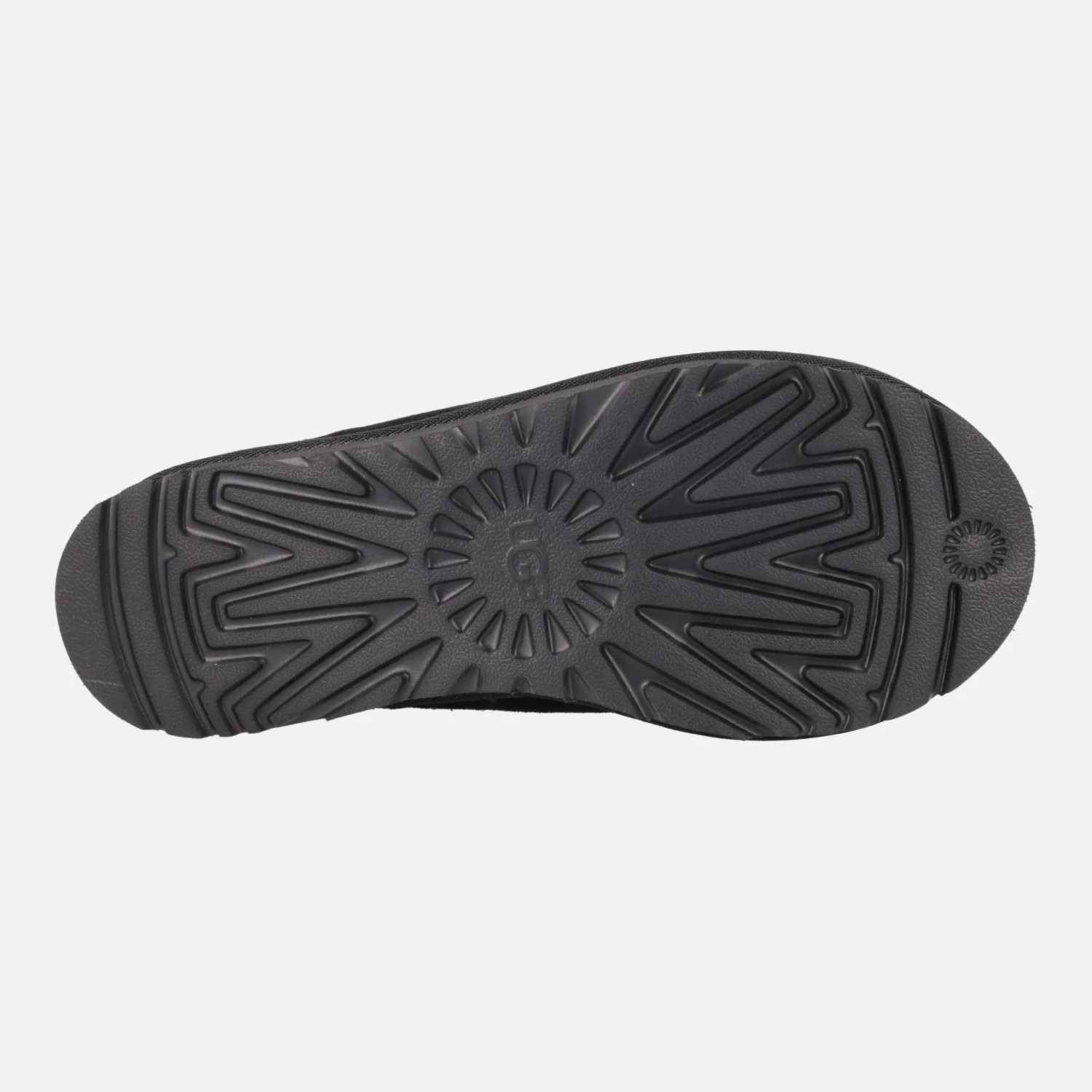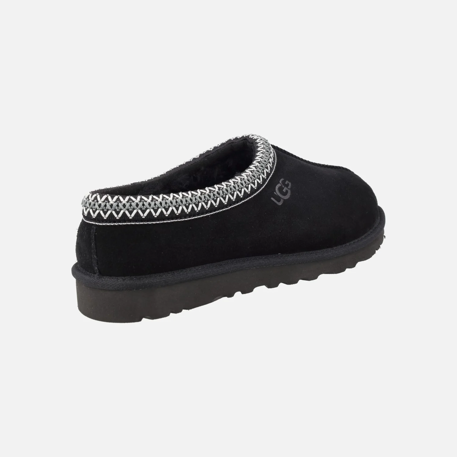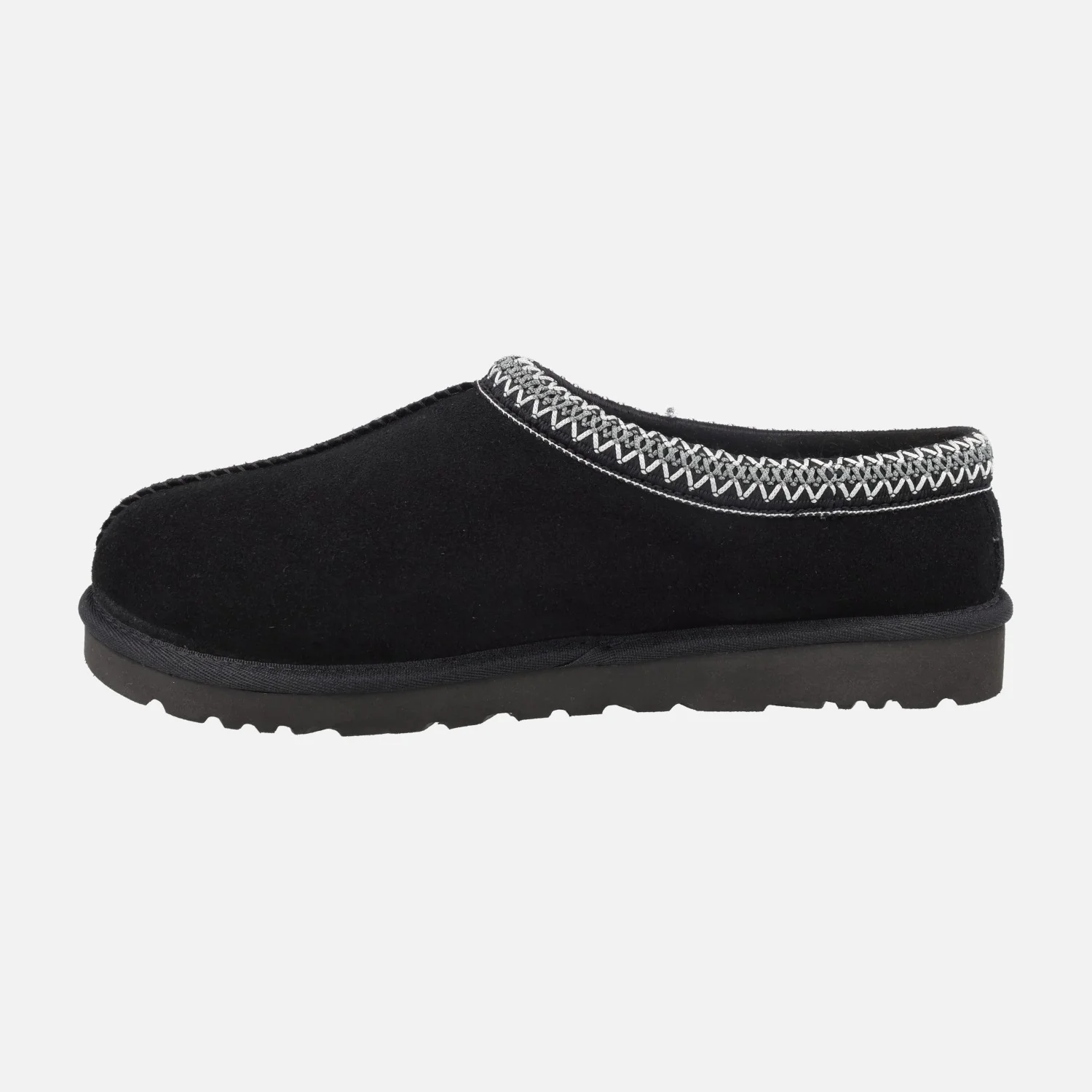 Zuecos para hombre UGG Tasman II 1174671 Black. Zuecos de ante en color negro con ribete textil trenzado (poliéster reciclado). Totalmente forrados de pelo cálido de piel de oveja. Suela de goma EVA, muy ligera.